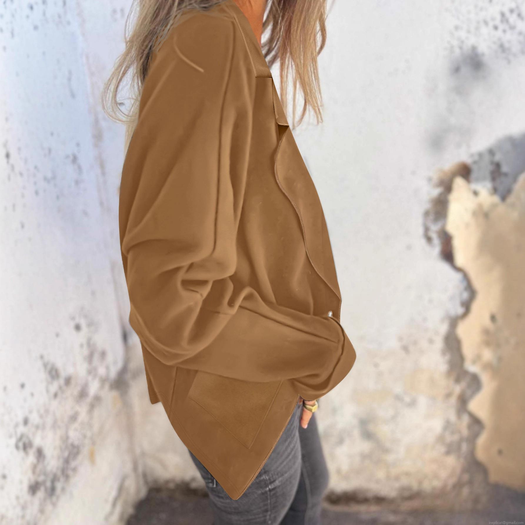 • Women's Casual Blazer Jacket Knitted De-velvet Lapel Collar Single Button Outerwear With Pockets Solid Color Long Sleeve Loose Fit Autumn Winter Ladies Tops
