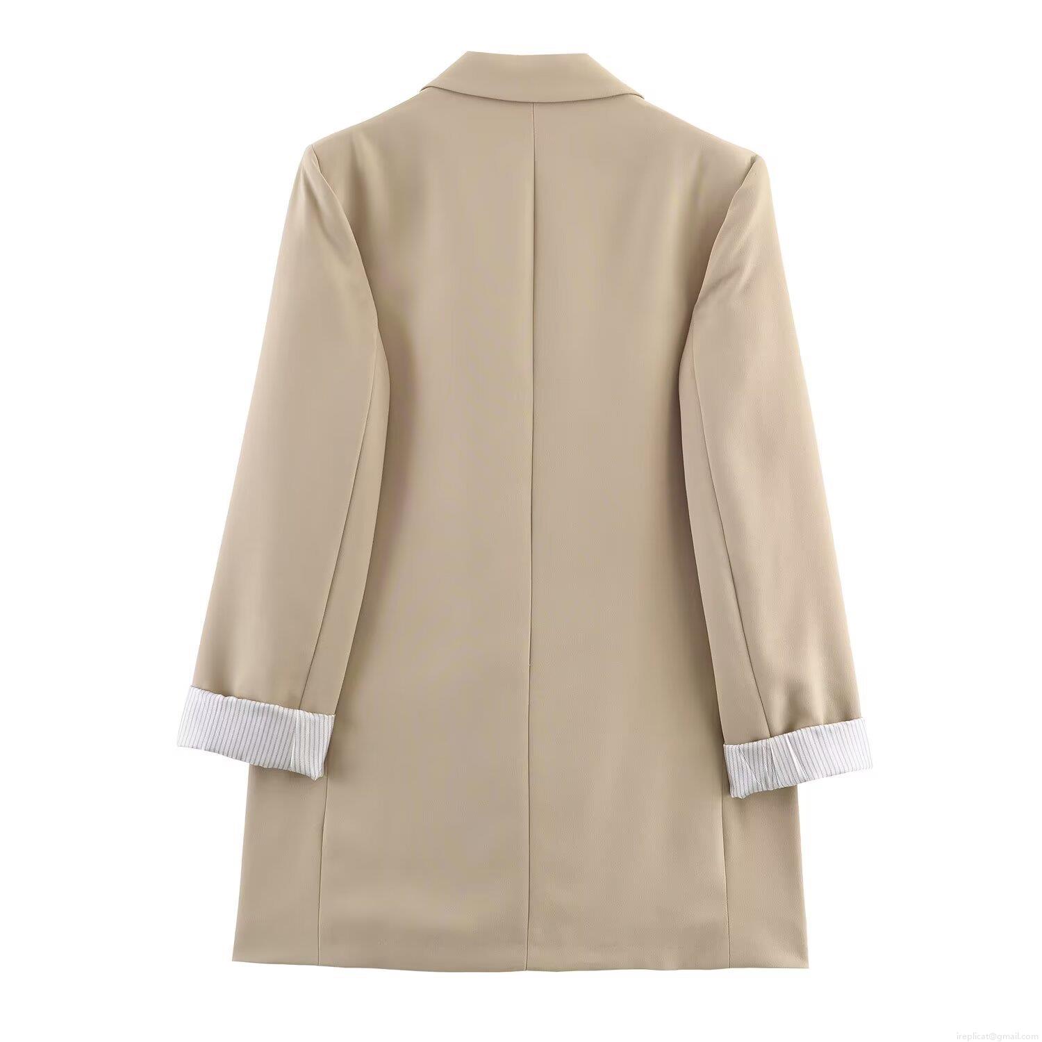 Solid Color, Stripe, Pocket, Single-breasted, Striped Rolled-up Sleeves