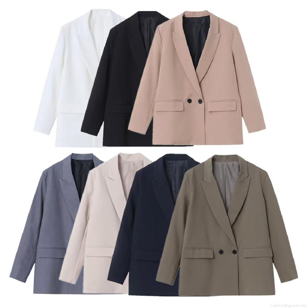• Women's Casual Blazer Jacket Polyester Spandex Lapel Long Sleeve Solid Color Outerwear For Office Lady Workwear Comfortable Loose Fit