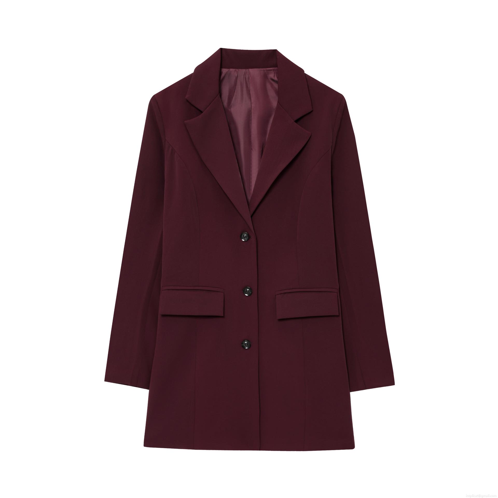 • Women's Casual Blazer Jacket Polyester Twill Long Sleeve Single Breasted Mid-Length Professional Office Suit Jacket With Flap Pockets Solid Color Workwear Elegant Outerwear For Ladies