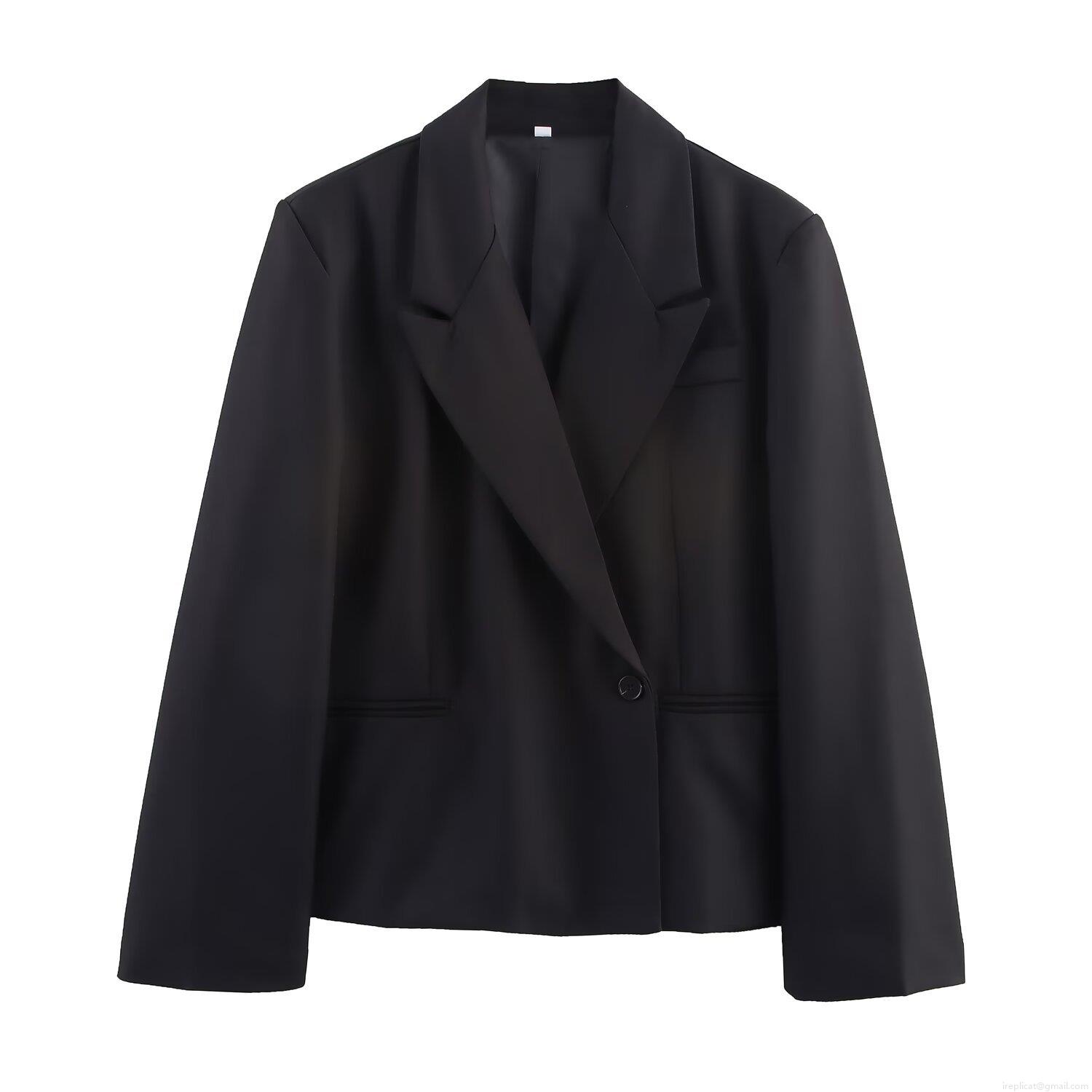 Women's Casual Blazer Jacket Short Suit Coat Polyester Notch Lapel Single Button Long Sleeve Elegant Outerwear For Office Commuting