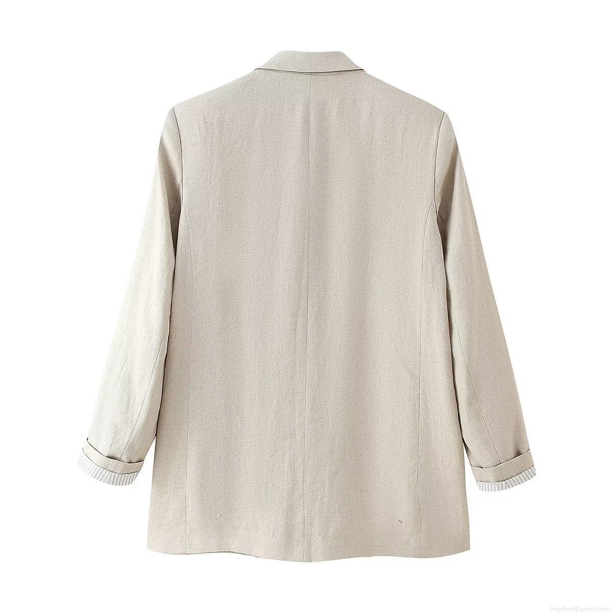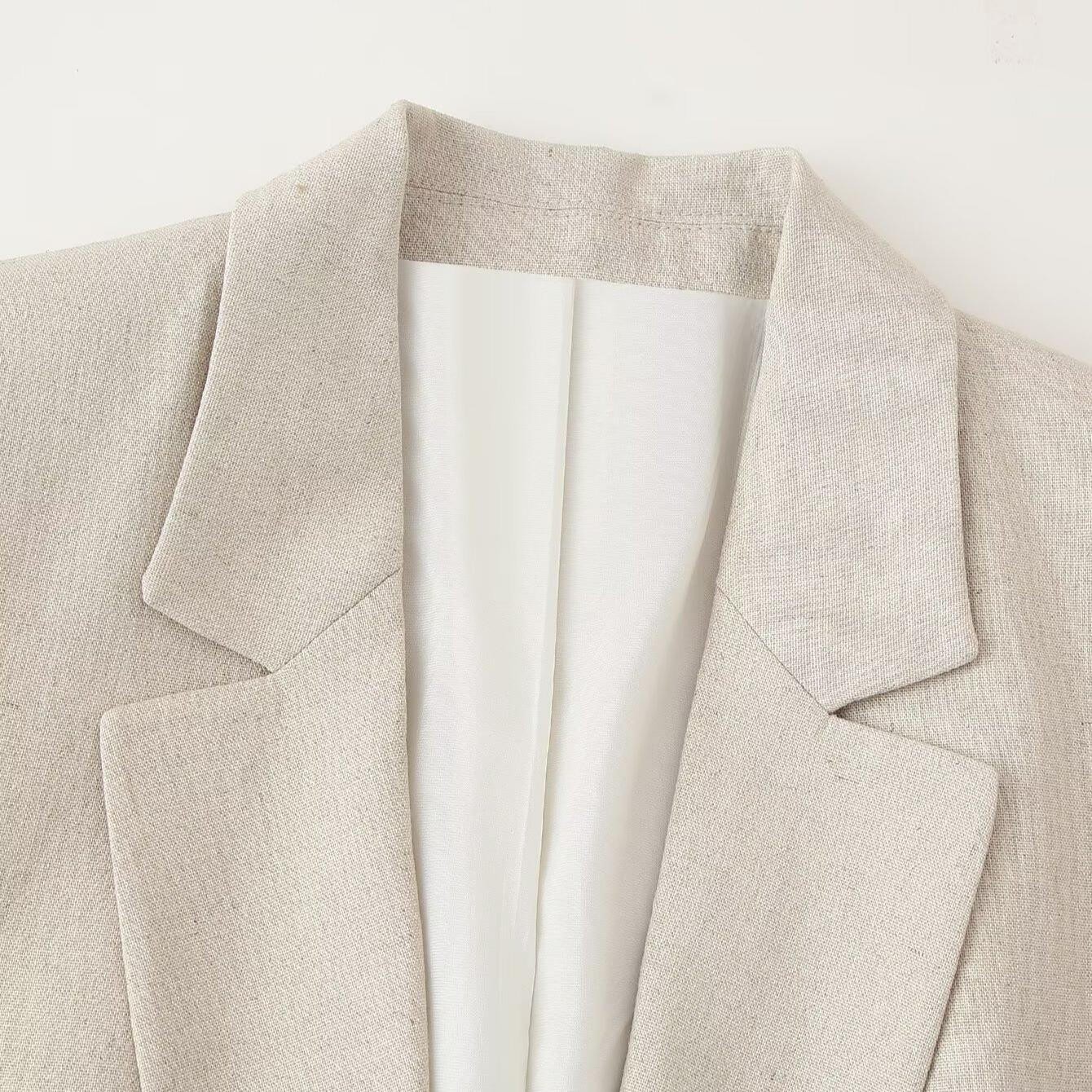 Women's Casual Blazer Jacket Solid Color Linen Texture Polyester Long Sleeve Notch Lapel Single Button Office Commute Outerwear for Ladies