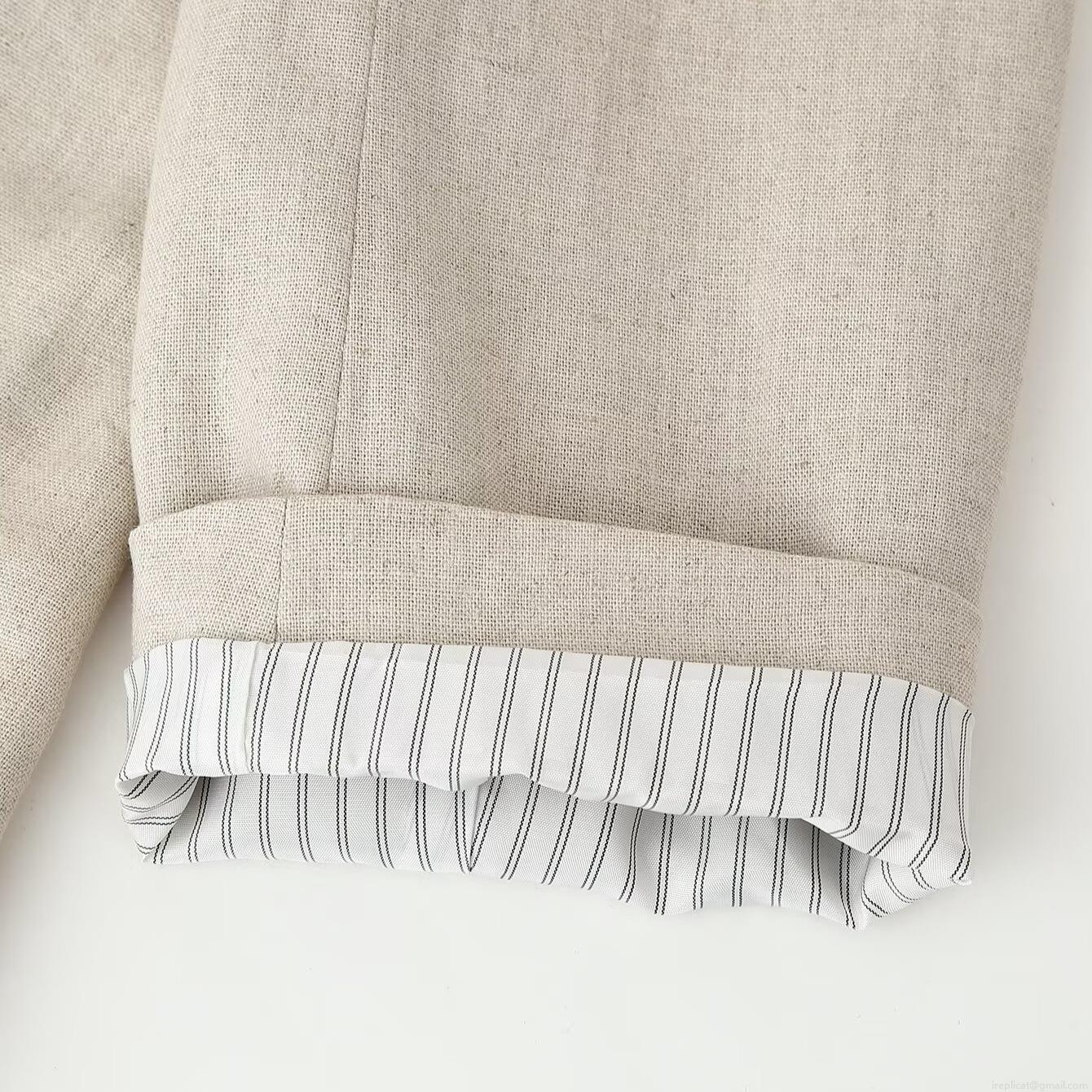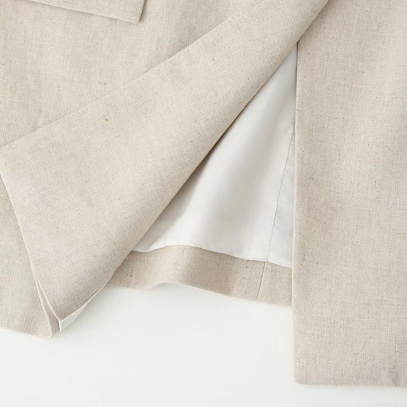 Solid Color, Button Decoration, Linen Texture, Posterior Center Suture