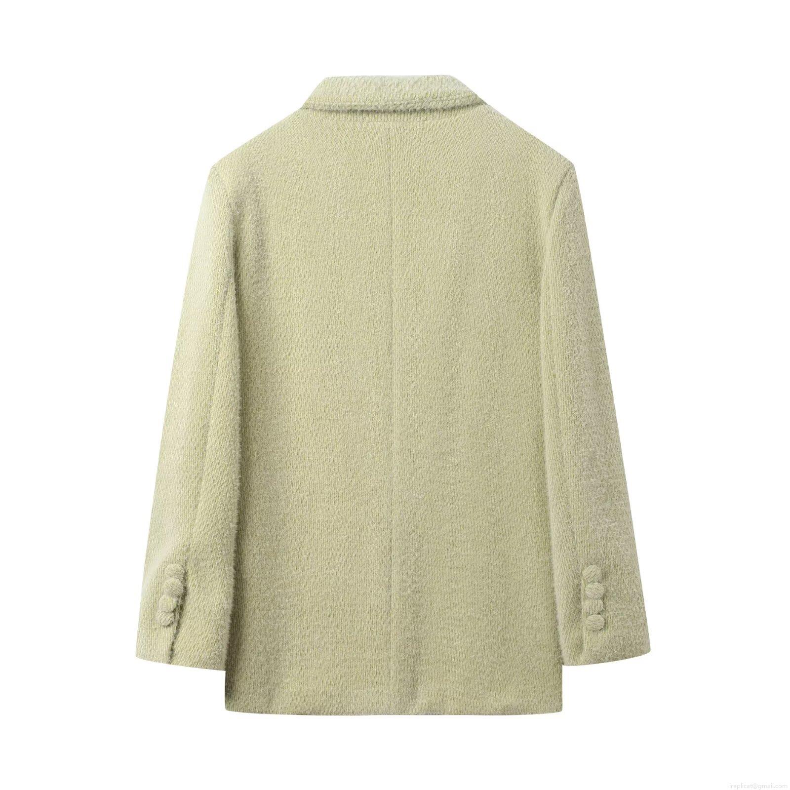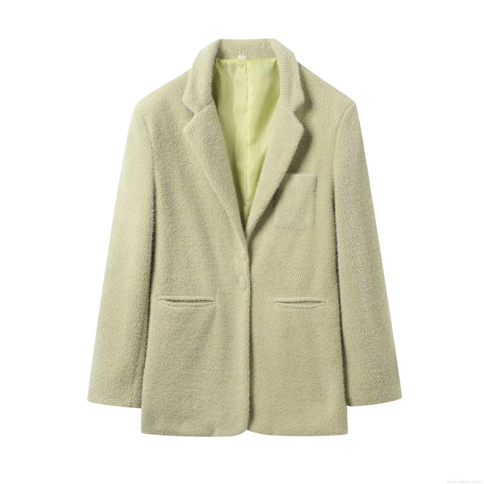 • Women's Casual Blazer Jacket Solid Color Suede Textured Notch Lapel One Button Mid Length Coat For Spring Autumn Office Dating Elegant Mint Green Outwear