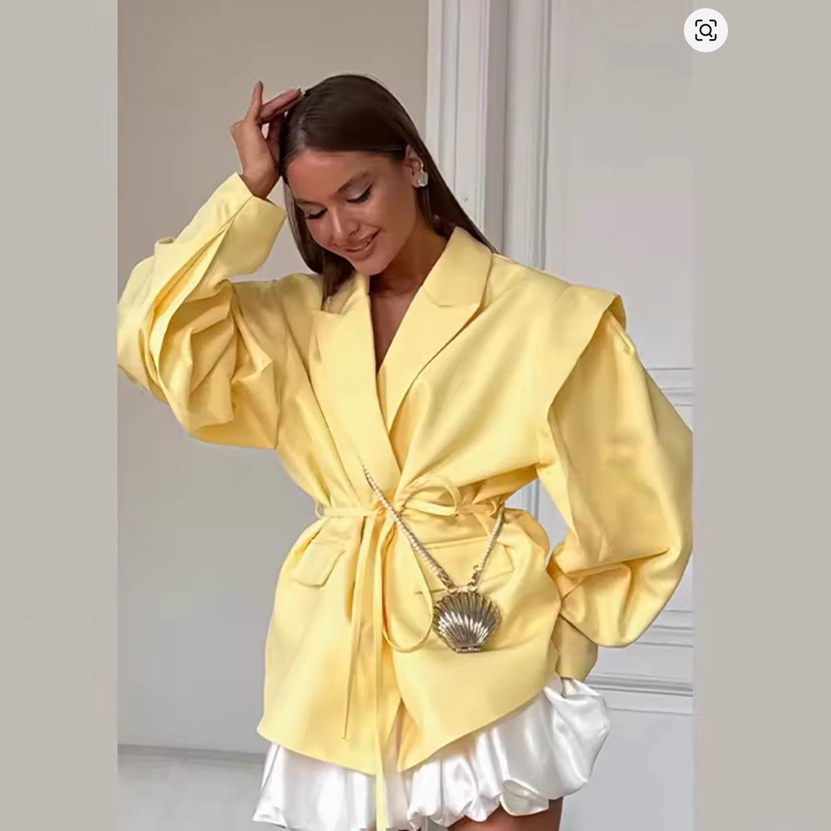 • Women's Casual Blazer Jacket With Waist Tie Belt Notch Lapel Long Sleeve Loose Fit Fashion Polyester Outerwear For Ladies Office Daily Wear