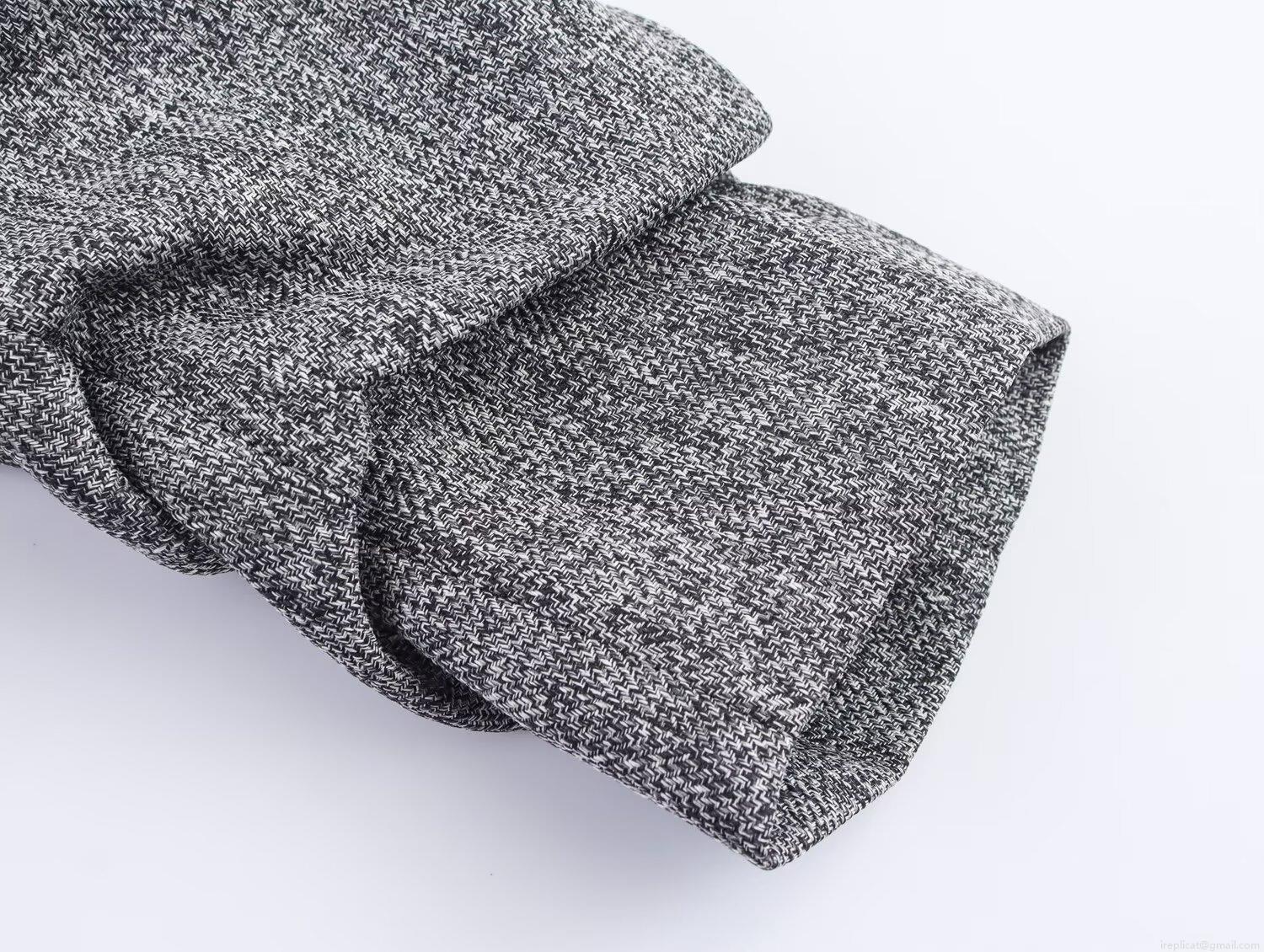 Solid Color, Herringbone, Gathering, Button Decoration, Pleated Sleeve Design