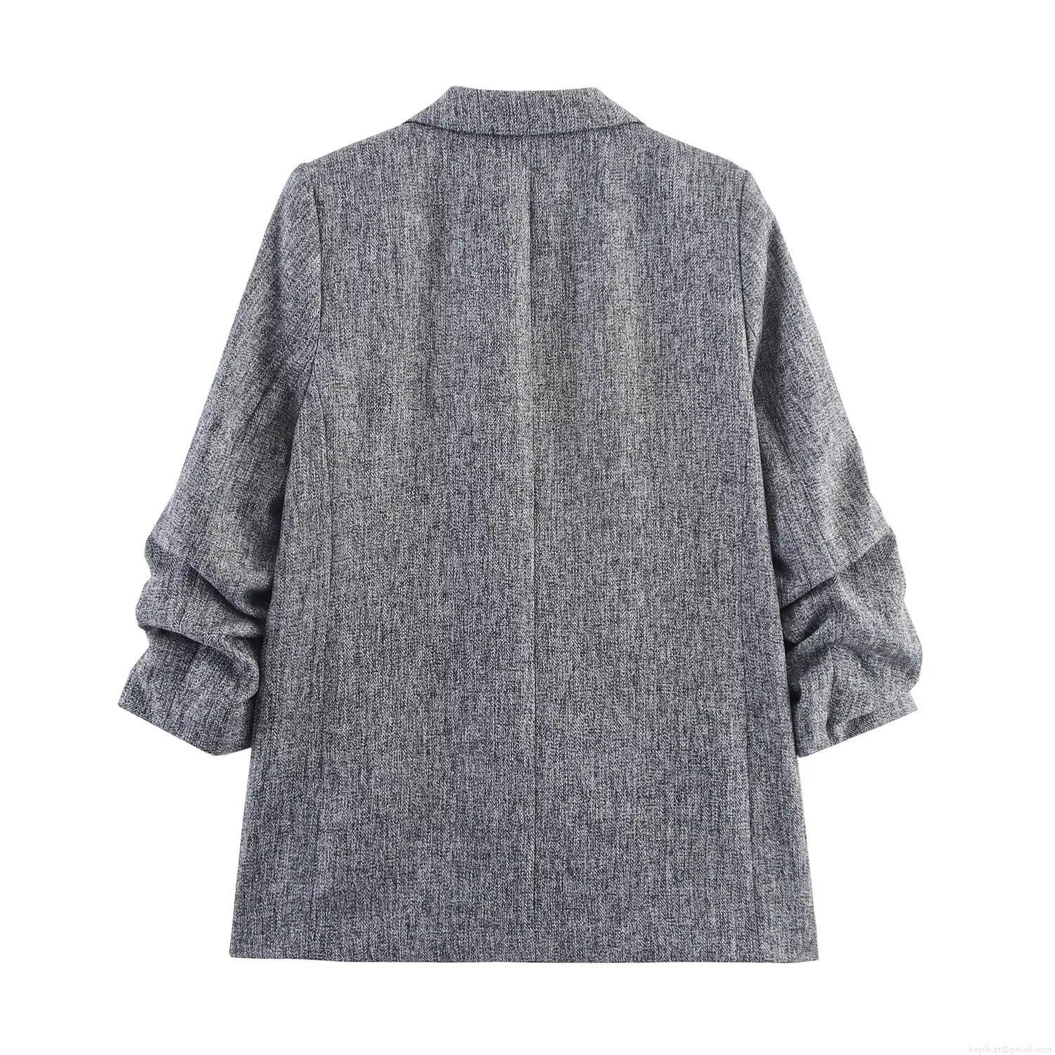 • Women's Casual Blazers Ruched Sleeve Notch Lapel Suit Jacket Single Breasted Work Office Blazer Outerwear For Fall Winter Ladies