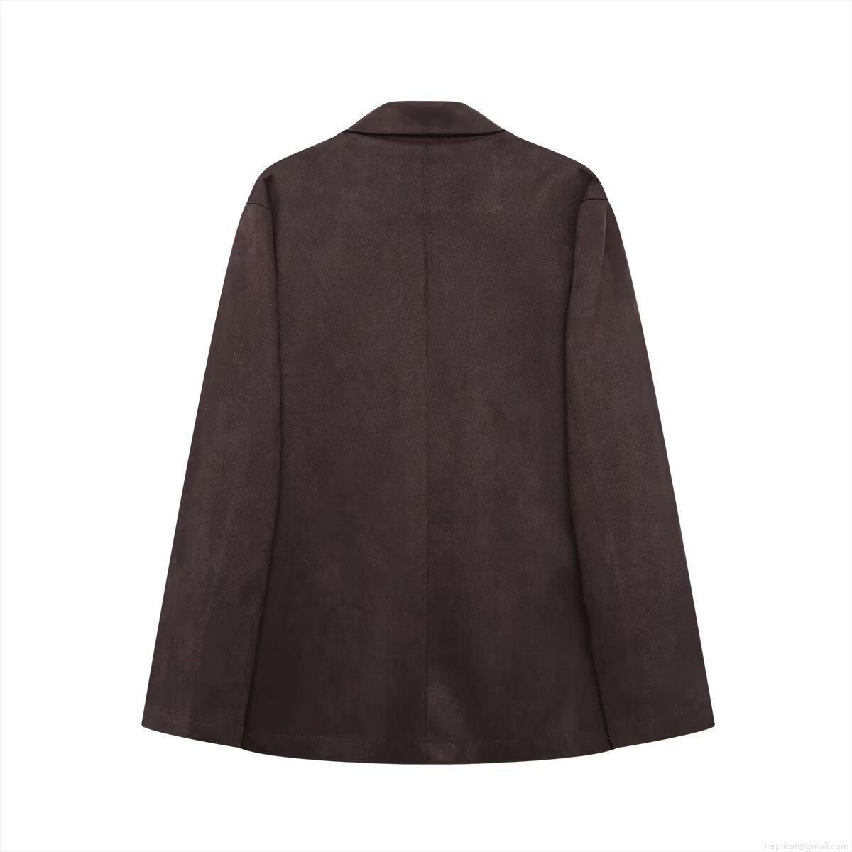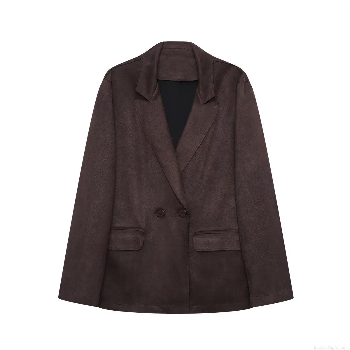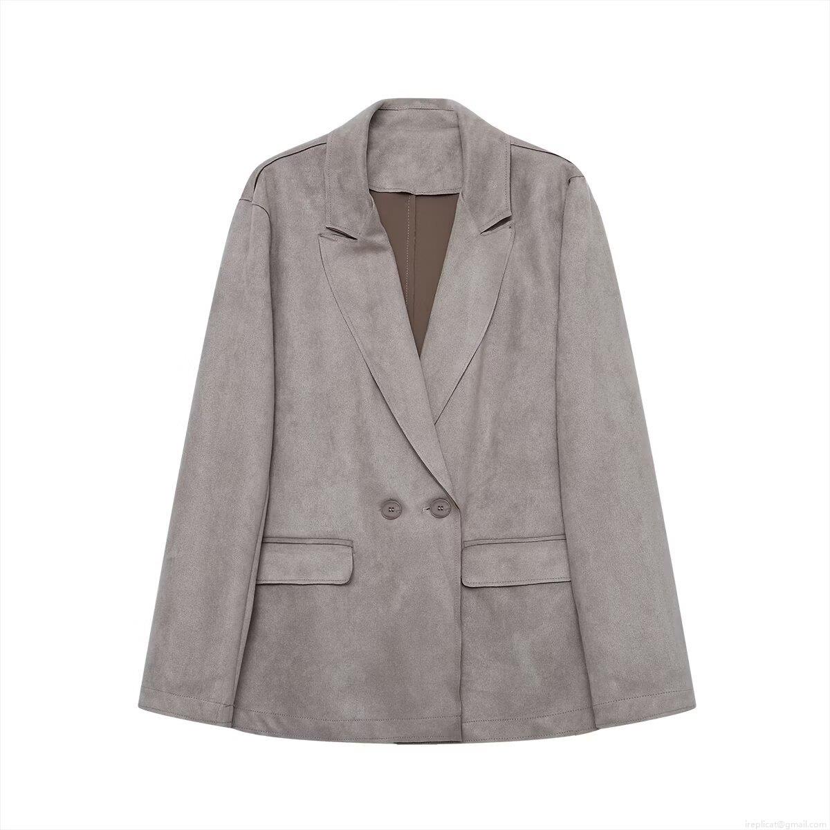 • Women's Casual Faux Suede Blazer Jacket Lapel Double Breasted Long Sleeve Solid Color Outerwear For Office Daily Streetwear Ladies Fashion Soft Suede Coat