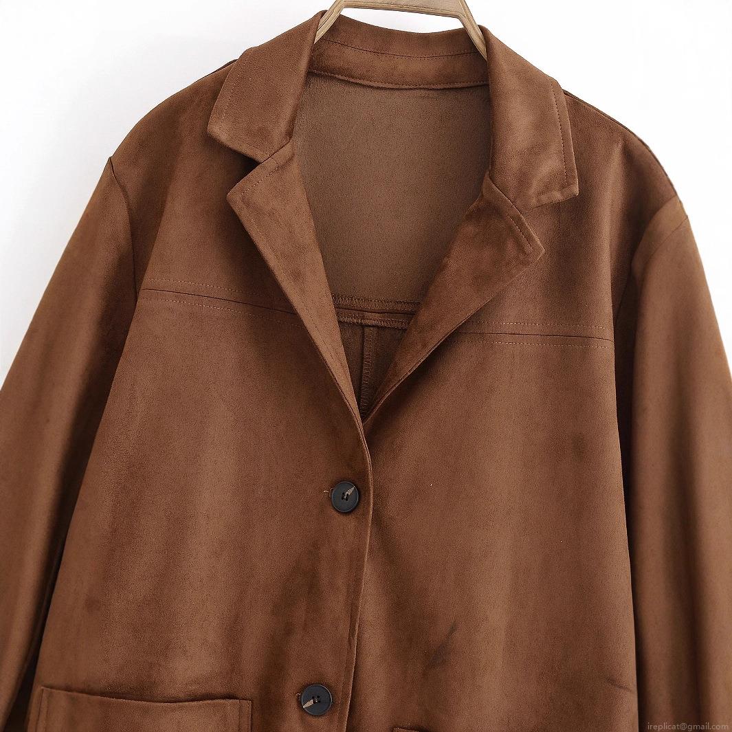• Women's Casual Faux Suede Blazer Jacket Single Breasted Long Sleeve Lapel Loose Fit Outerwear With Pockets For Autumn Winter Streetwear