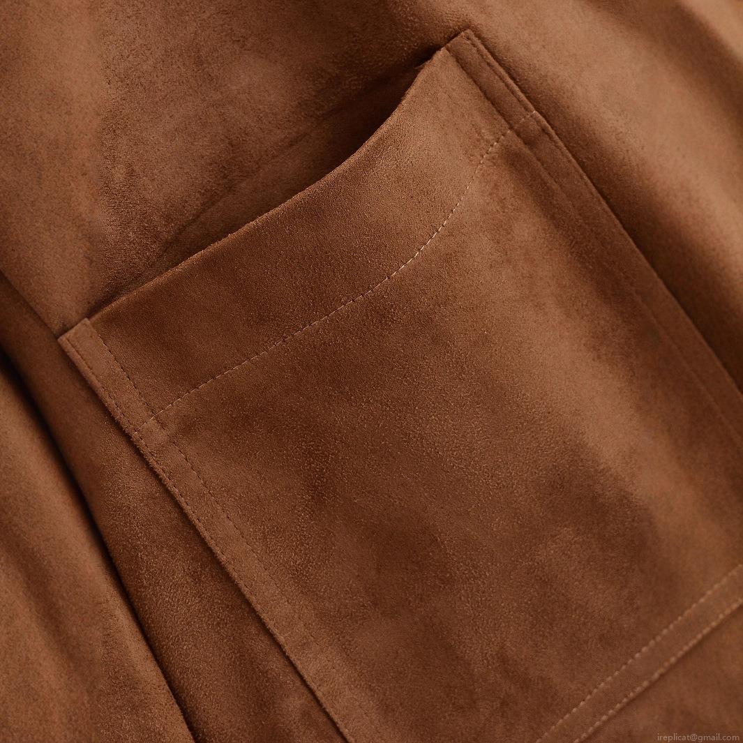 Solid Color, Single-breasted, Suede Texture, Topstitching, Sticker Bag