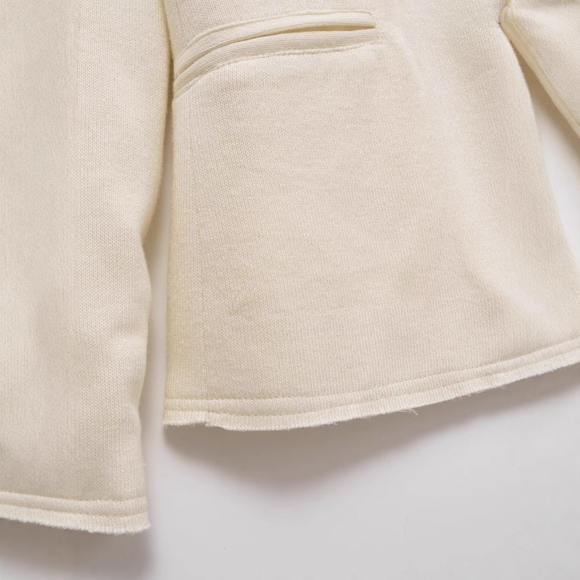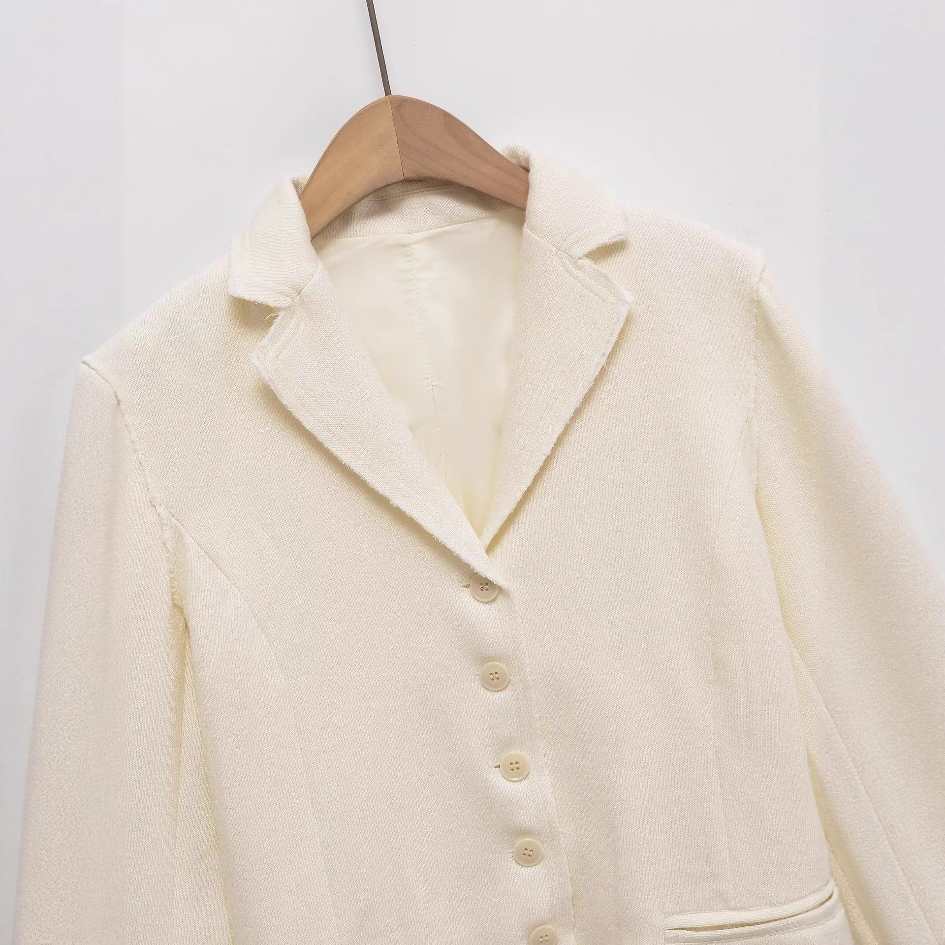 • Women's Casual Knit Texture Blazer Jacket Single Breasted Lapel Long Sleeve Suit Outwear with Pockets for Autumn Minimalist Fashion
