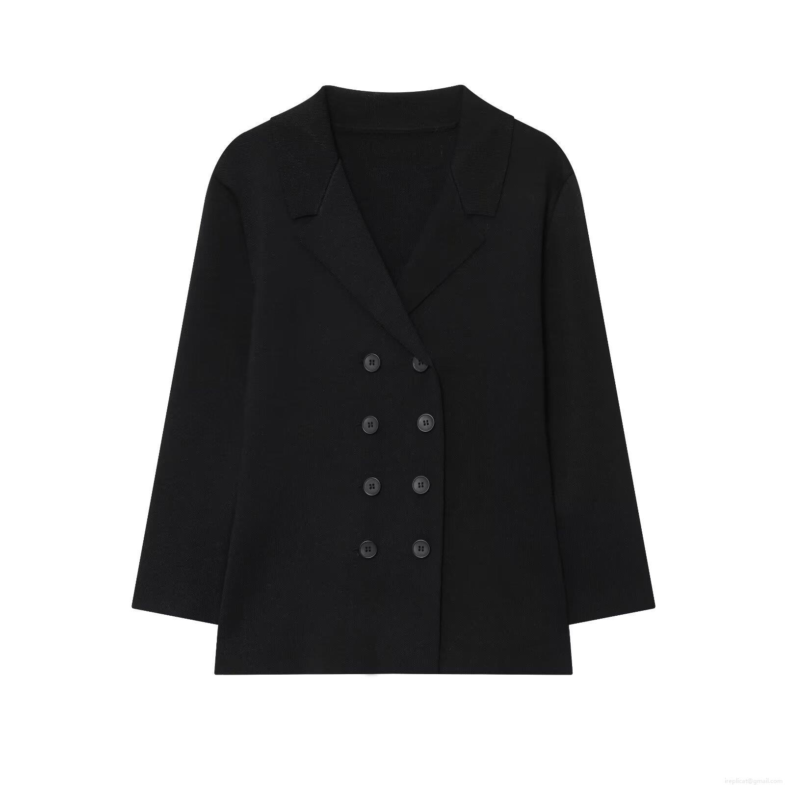 • Women's Casual Knitted Blazer Jacket Double Breasted Lapel Loose Fit Long Sleeve Cotton Blend Cardigan Outerwear for Daily Office Commuting Autumn Winter