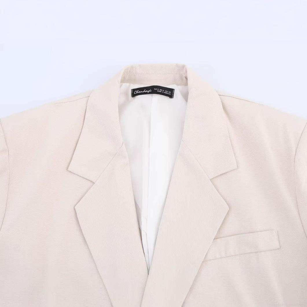 • Women's Casual Loose Blazer Jacket Solid Color Lapel Long Sleeve Single Breasted Mid Length Suit Coat Polyester Outerwear Office Daily Street Style
