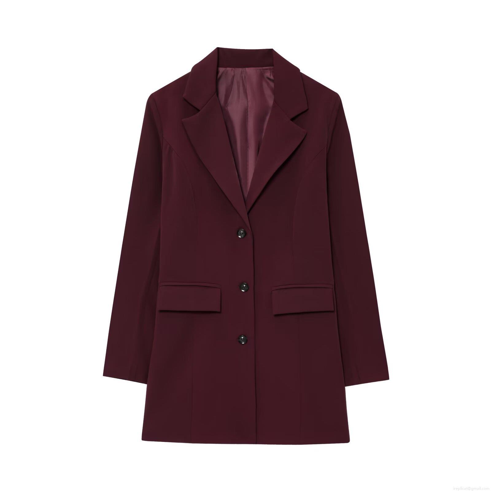 • Women's Casual Polyester Blazer Jacket Lapel Long Sleeve Three Button Work Office Suit Coat