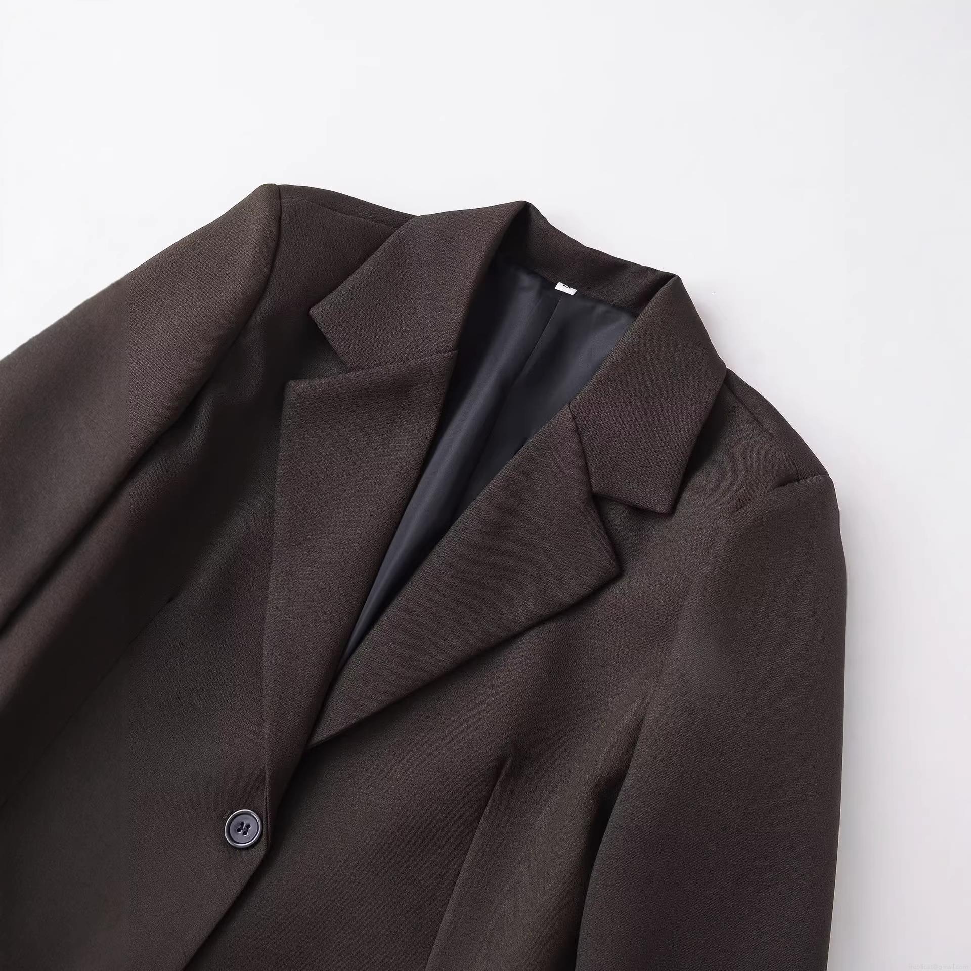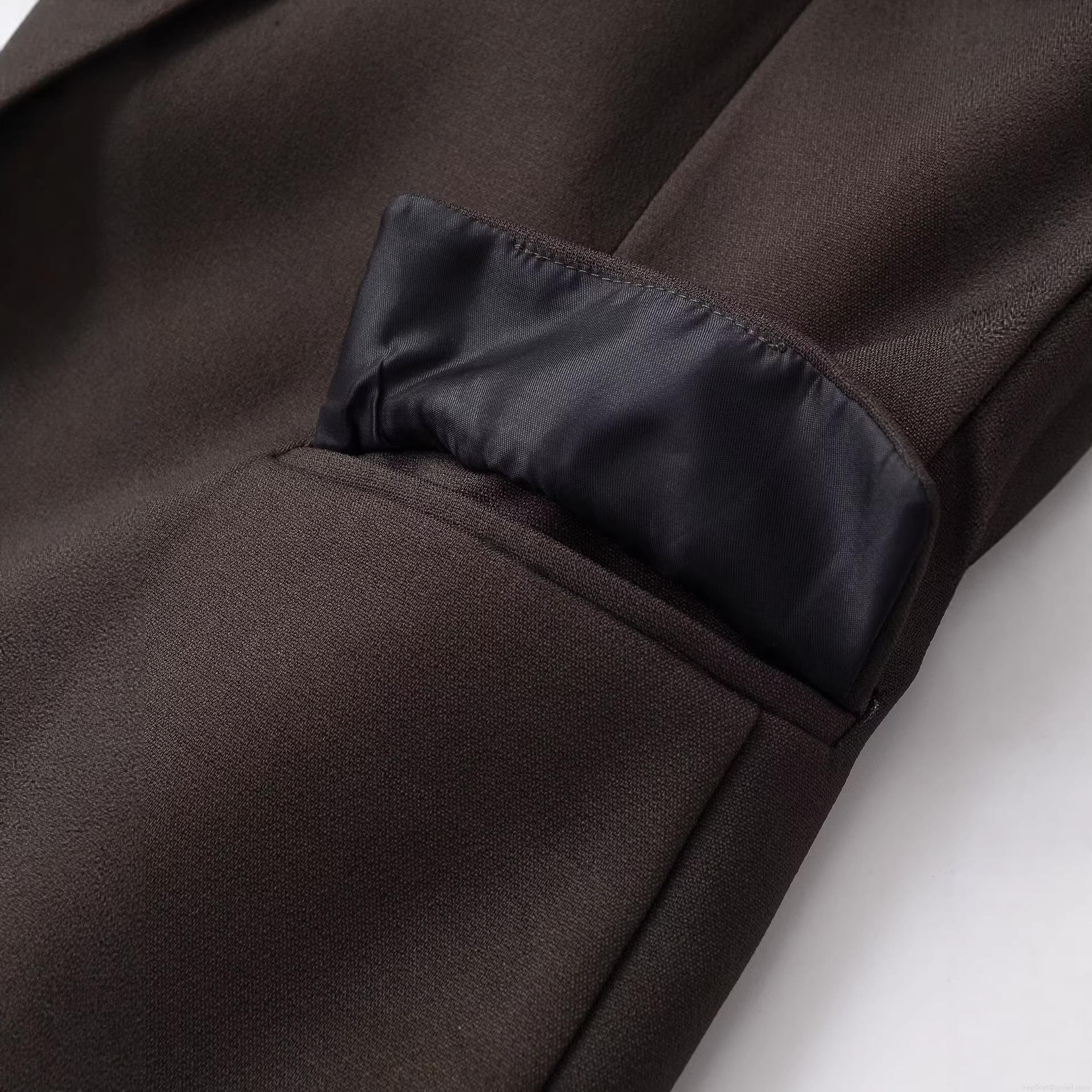 • Women's Casual Polyester Blazer Jacket Single Button Long Sleeve Outerwear With Pocket Flaps Professional Office Lady Suit Top For Spring Autumn Deep Brown