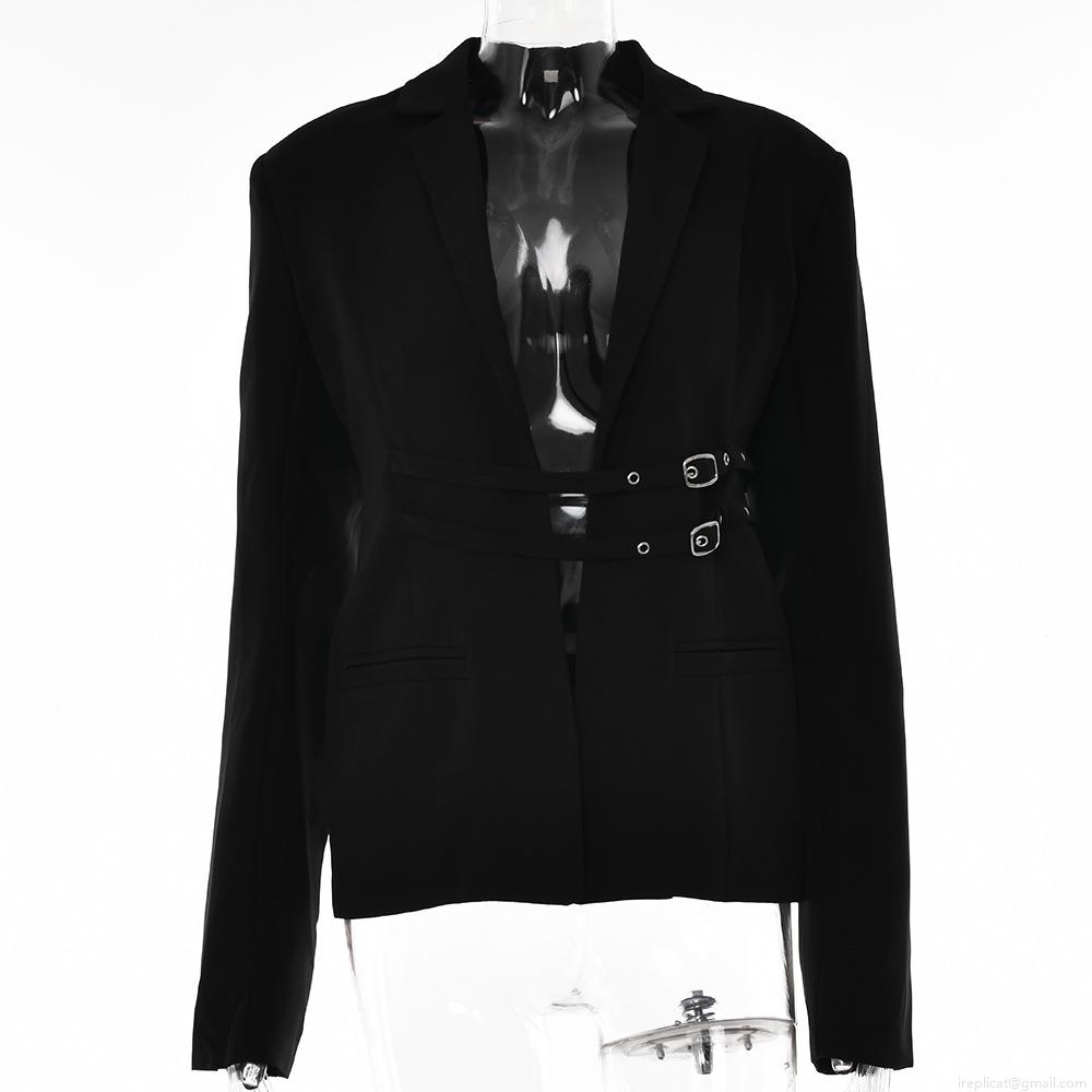 • Women's Casual Polyester Slim Fit Blazer Jacket With Lace-up Waist Hollow Out Design Long Sleeve Notch Lapel Suit Coat For Women Streetwear