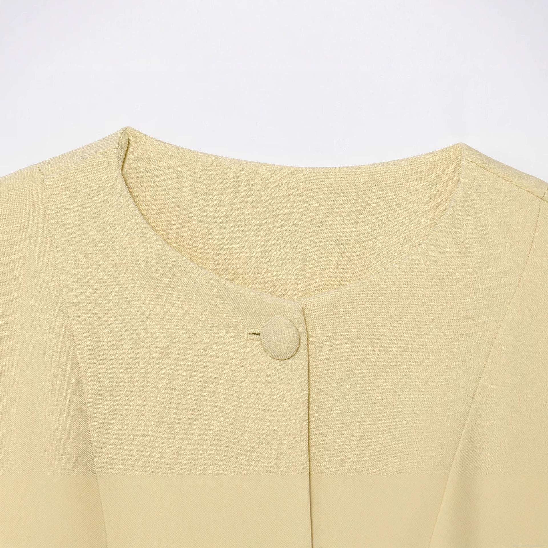 Women's Casual Round Neck Long Sleeve Blazer Solid Color Single Breasted Jacket For Autumn Daily Office Street Style Ladies Outerwear