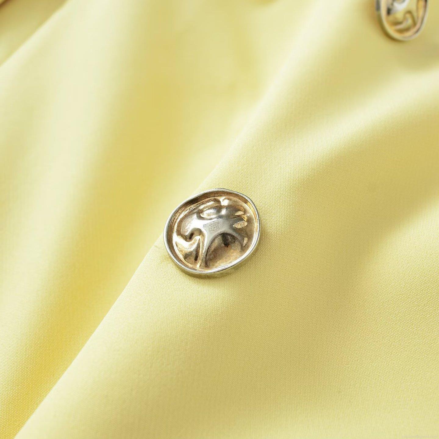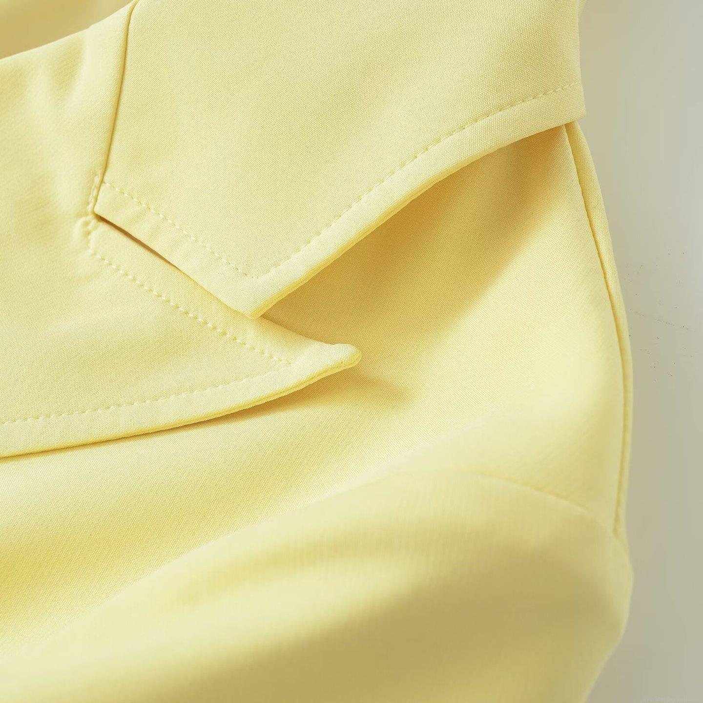 Women's Casual Short Blazer Jacket 100% Polyester Double Breasted Notch Lapel Solid Yellow Outerwear for Streetwear Office Lady