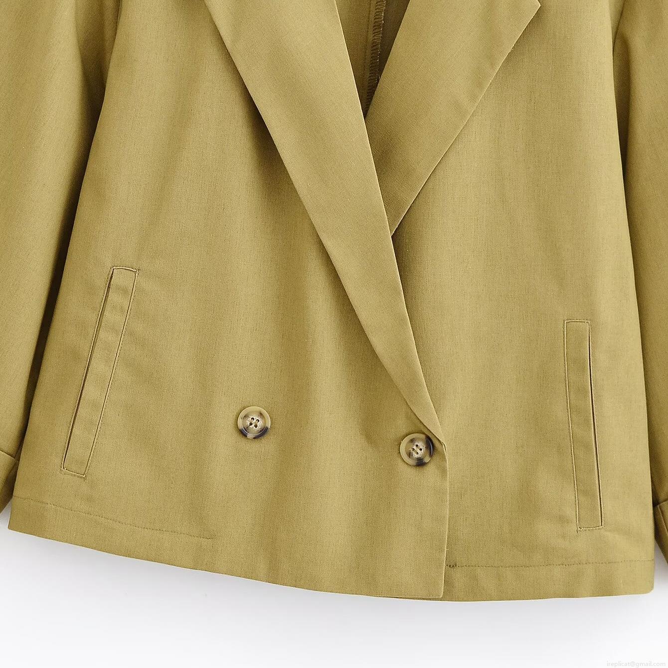 • Women's Casual Short Blazer Jacket Linen-Like Polyester Double Breasted Notch Lapel Solid Color Coat For Office Commute Summer Chic Outerwear