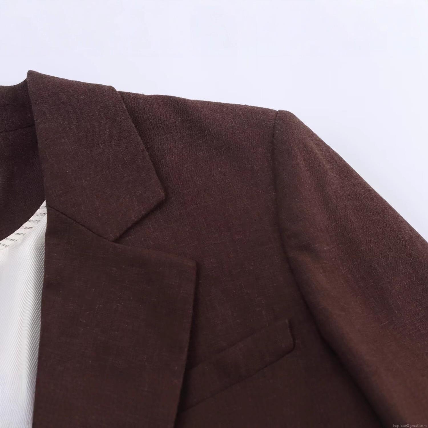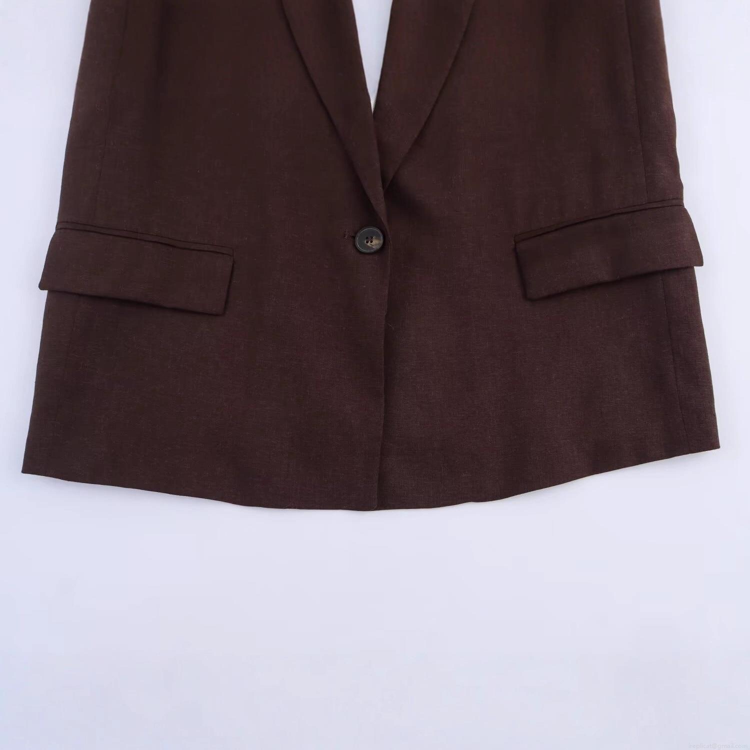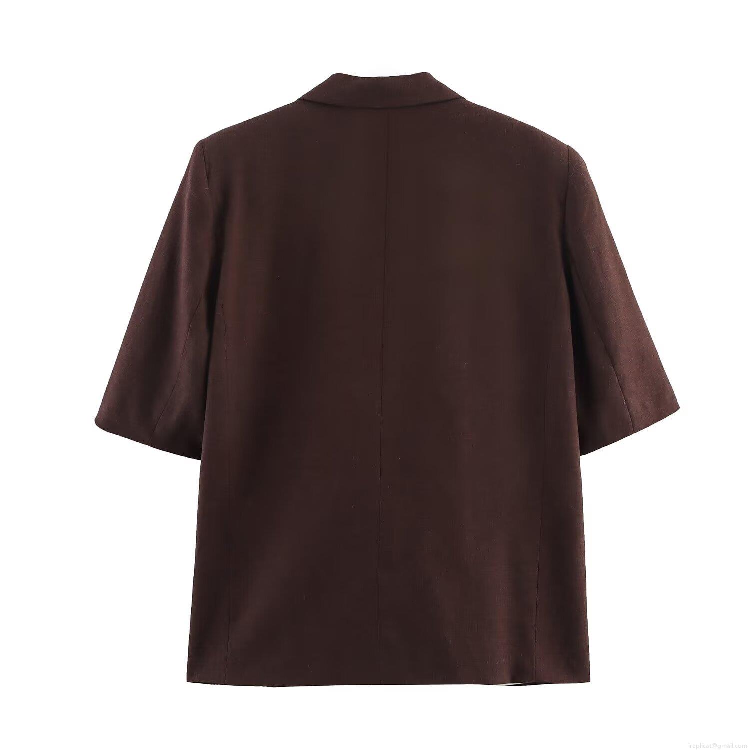 • Women's Casual Short Sleeve Blazer Jacket Cotton Linen Blend Single Button Lapel Pocket Decoration Street Style Outerwear Coffee XS-L