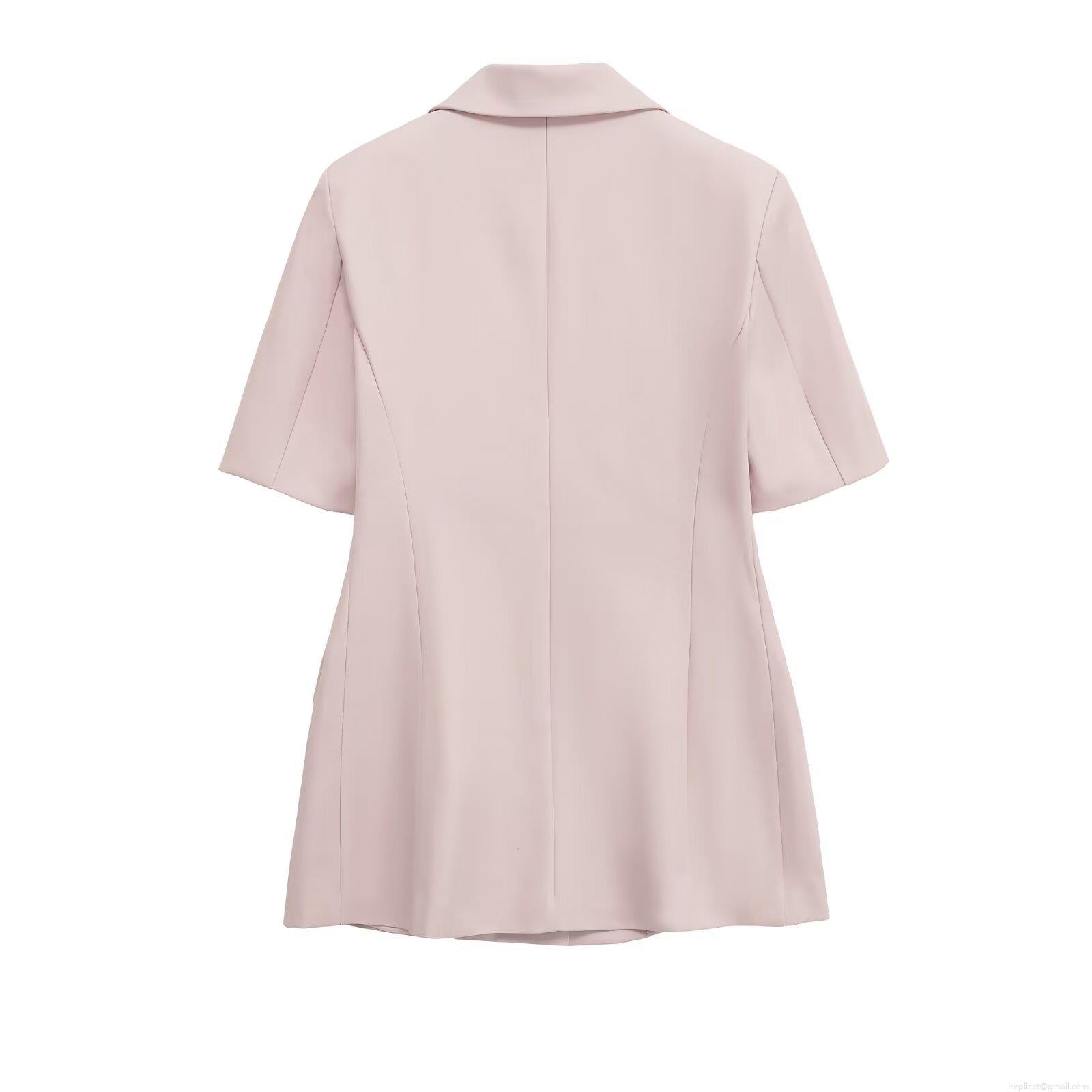 Women's Casual Short Sleeve Blazer Jacket Slim Fit Single Breasted Notch Lapel Solid Color Polyester Outerwear Ladies Fashion Top