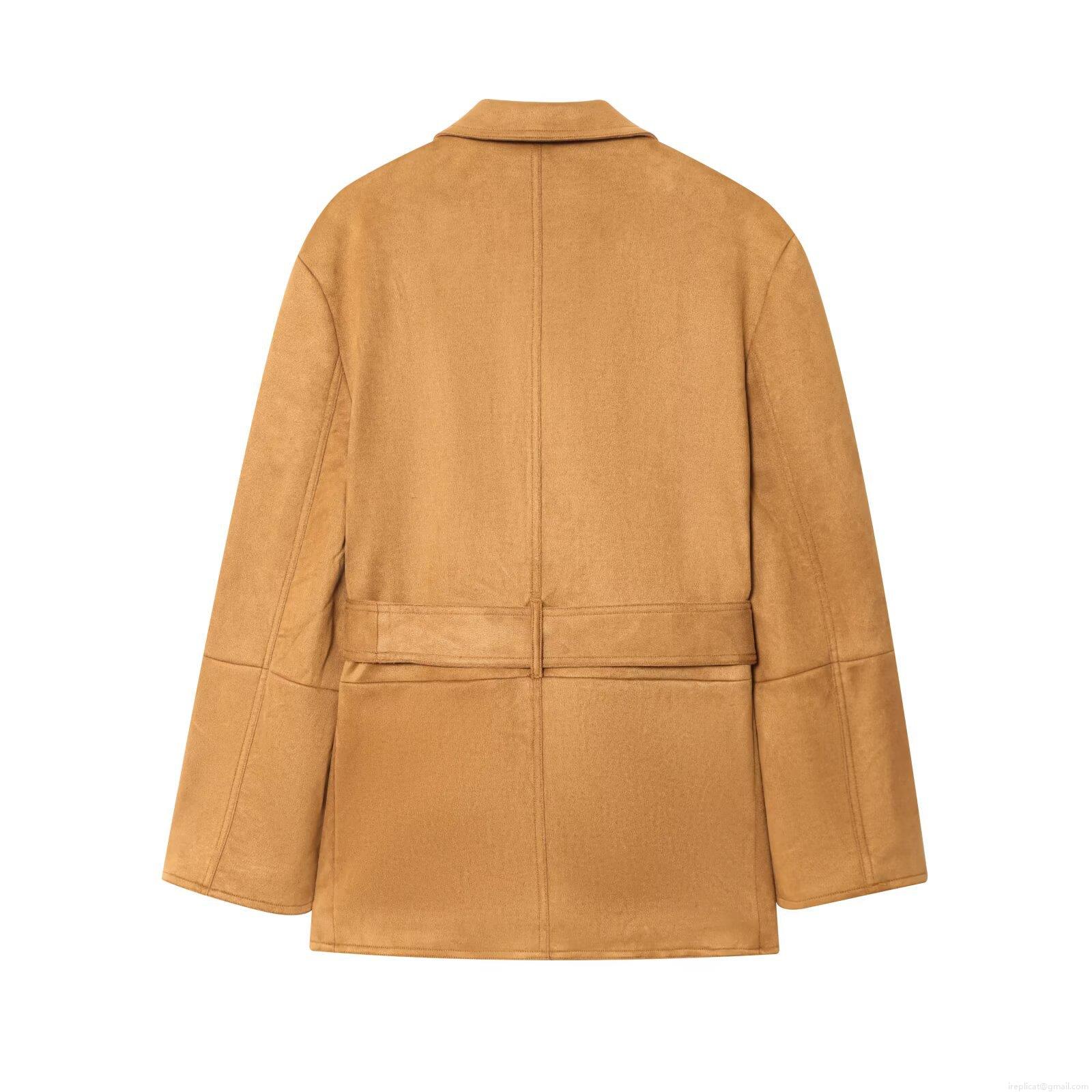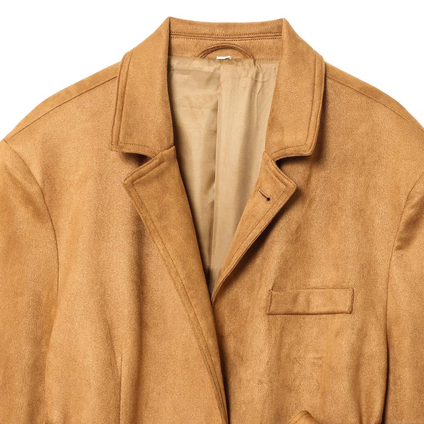 • Women's Chic Faux Suede Blazer Jacket Chic Solid Color Mid Length Lapel Long Sleeve Suit Coat With Waist Belt For Office Commute