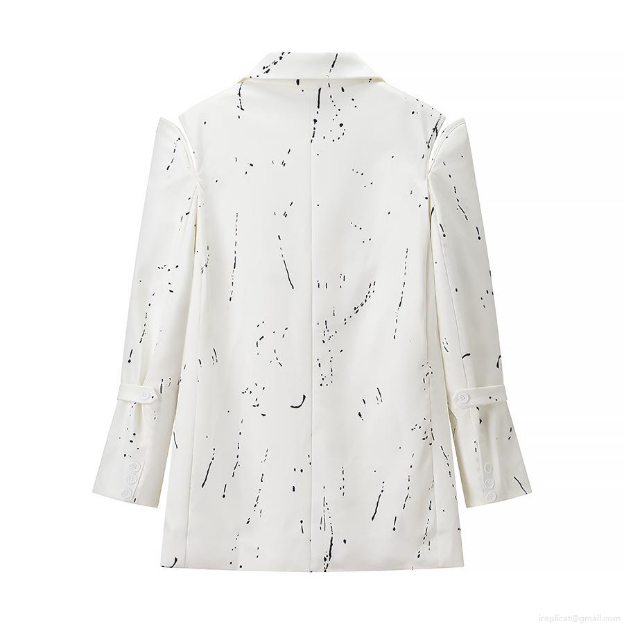 Graffiti, Pocket, Shoulder Pads, Single-breasted, Splashed Ink, Artistic Prints, Twill Texture, Irregular Splashes
