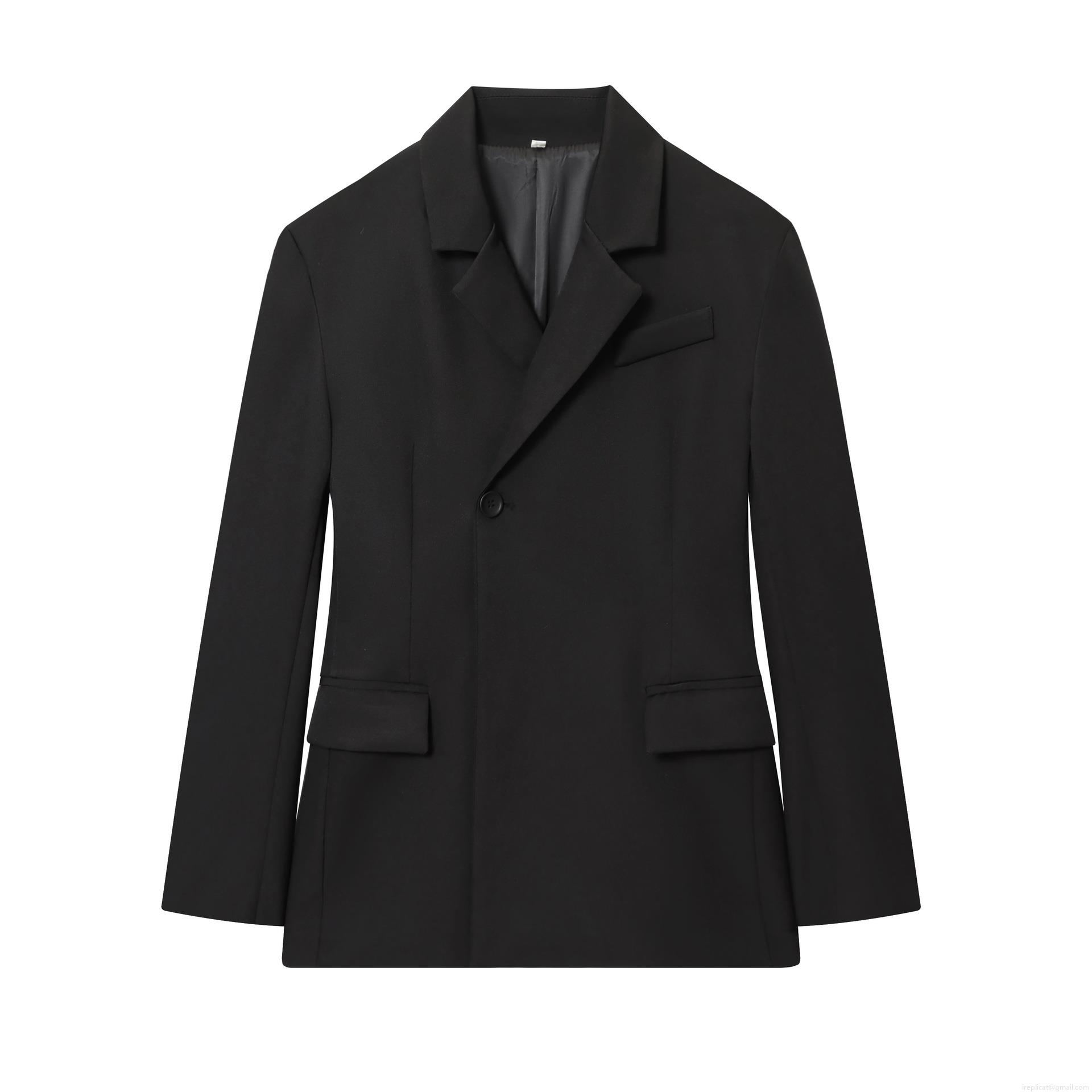 • Women's Classic Black Blazer Jacket Polyester Single Button Notch Lapel Long Sleeve Professional Office Casual Slim Fit Outwear For Lady Celebrity Style