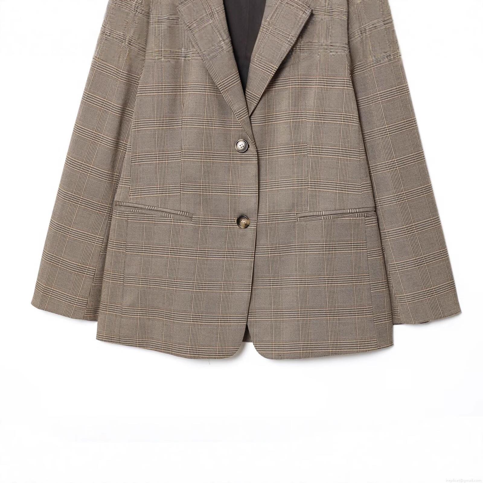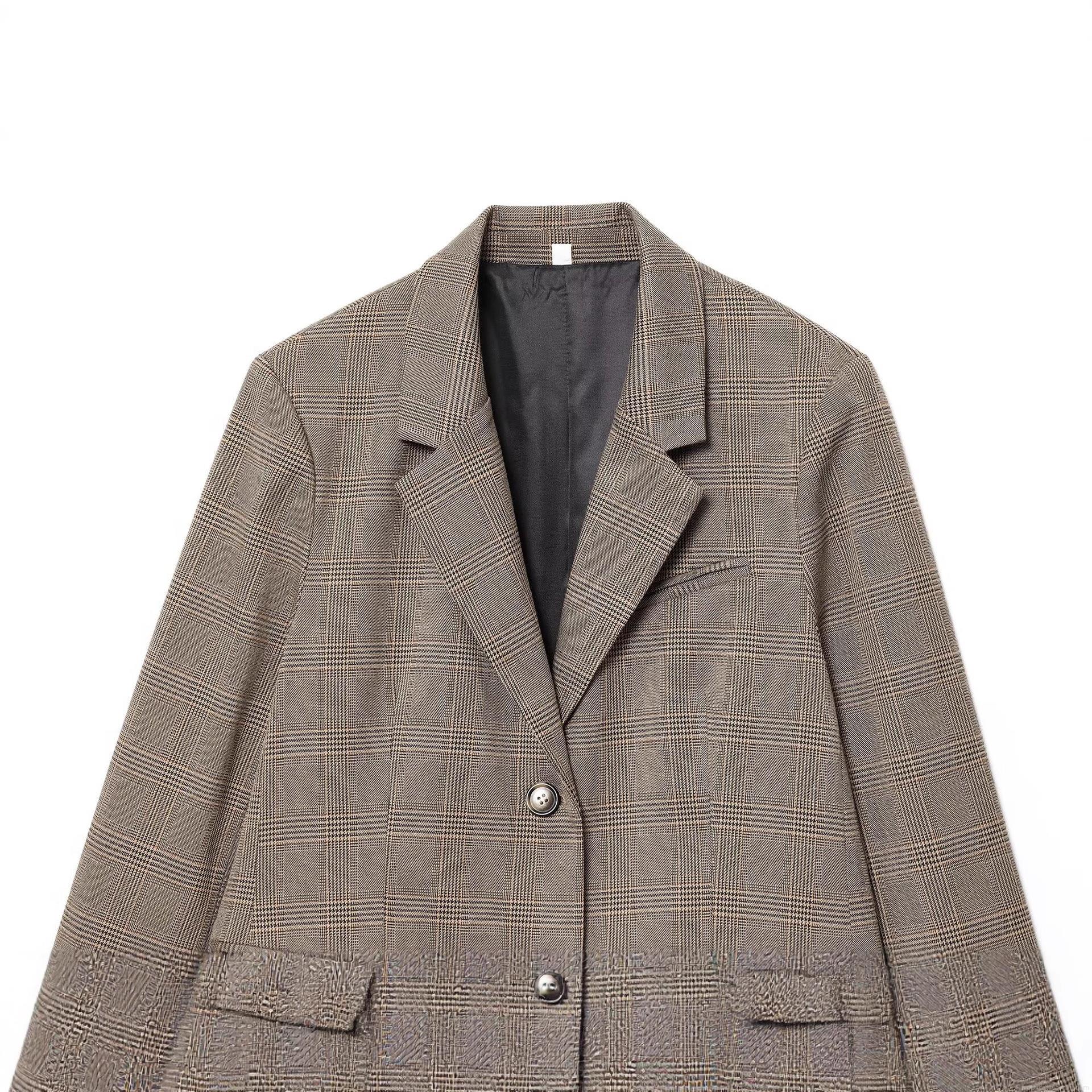 • Women's Classic Brown Glen Plaid Blazer Notched Lapel Single Breasted Suit Jacket Casual Long Sleeve Outerwear Office Lady Fashion Workwear Coat
