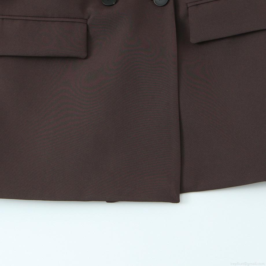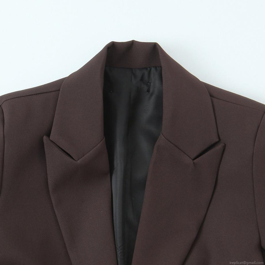 • Women's Classic Deep Brown Blazer Jacket Elegant Mid-Length Suit With Double Waist Belts Lapel Double Breasted Office Lady Commuter Outerwear