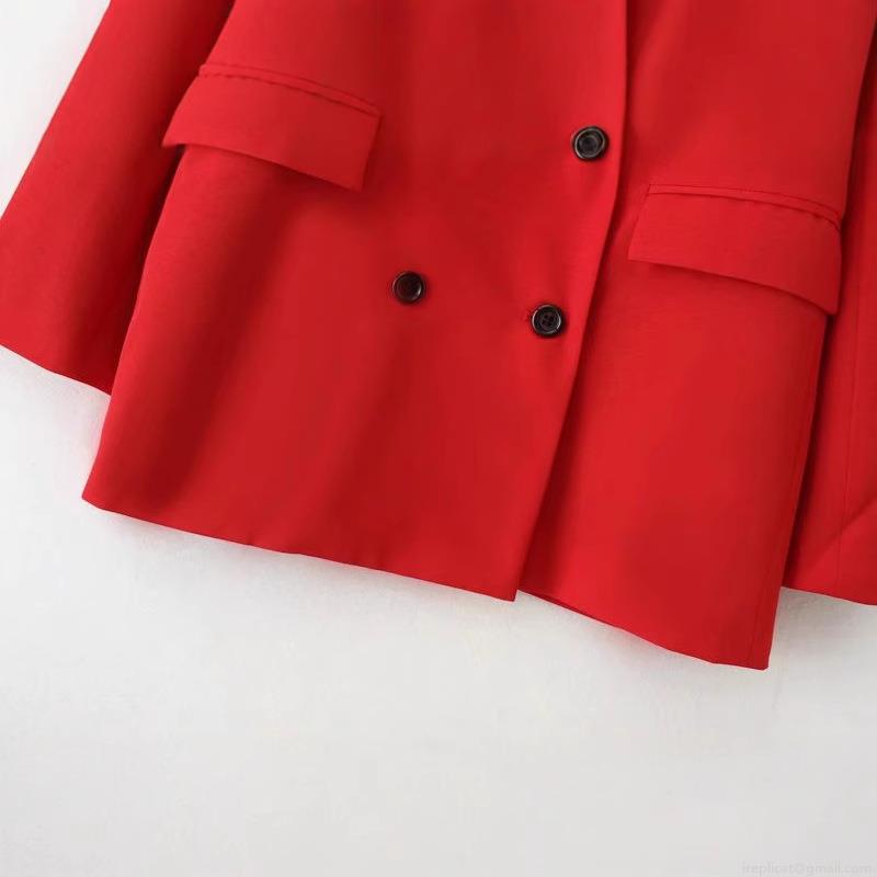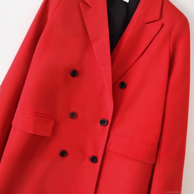 • Women's Classic Double Breasted Red Blazer Jacket Long Sleeve Notch Lapel Solid Polyester Outerwear With Pockets For Office Work Professional Party Casual Coat