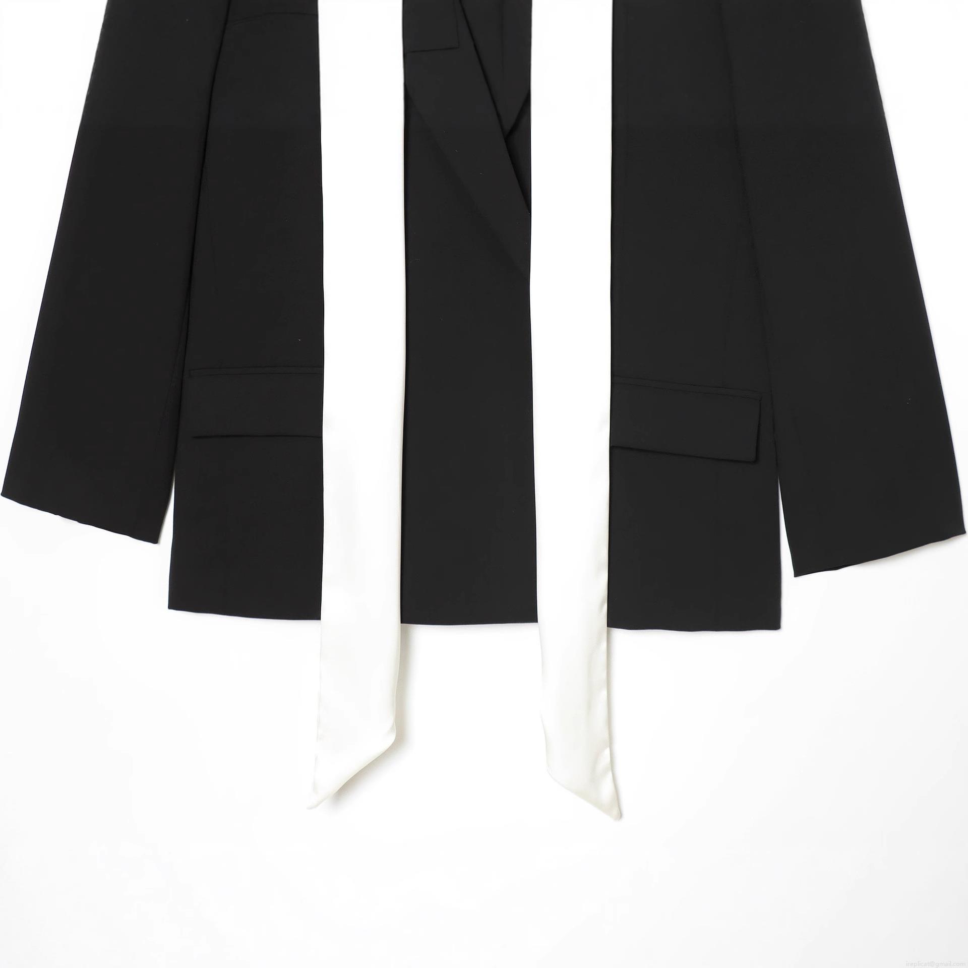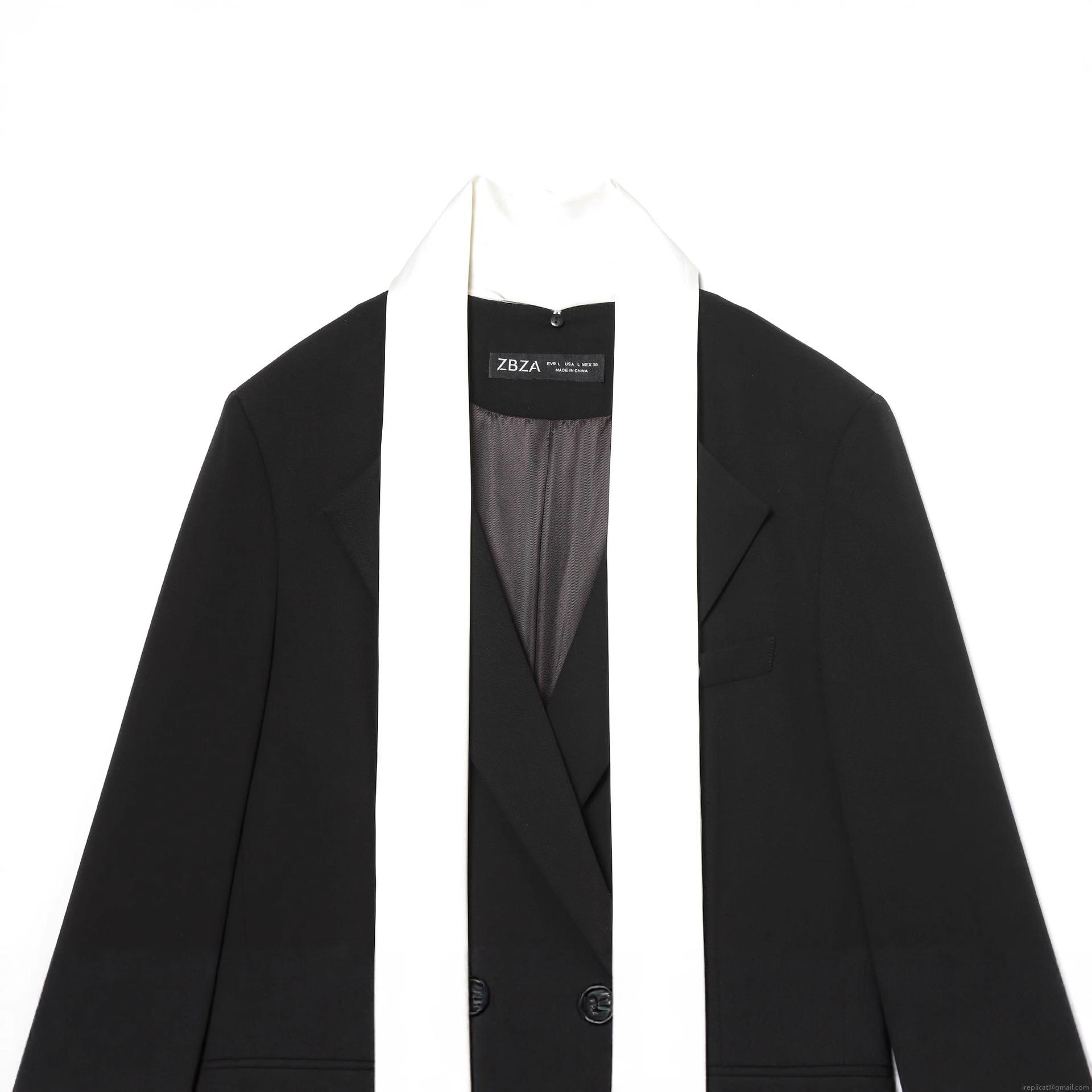• Women's Contrast Color Block Blazer Jacket With White Scarf Collar Design Polyester Long Sleeve Single Breasted Suit Coat For Office Commute Elegant Lady Fashion