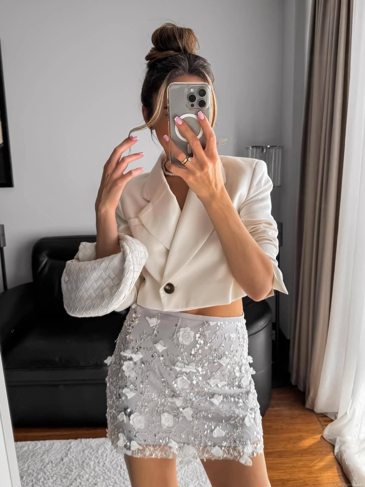 • Women's Cropped Long Sleeve Blazer Jacket Minimalist Solid Color Polyester Suit Coat Y2K Streetwear For Casual Office Party Lady
