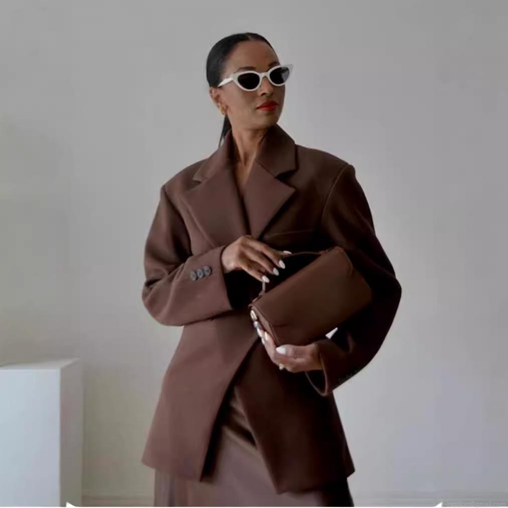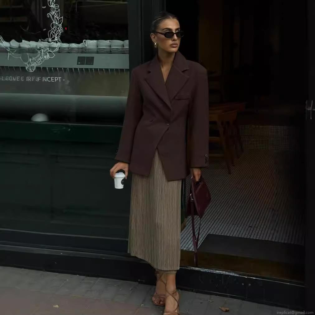 • Women's Double Breasted Blazer Coffee Brown Structured Slim Fit Waist Suit Jacket Notch Lapel Office Commute Woven Polyester Outerwear Autumn Fashion
