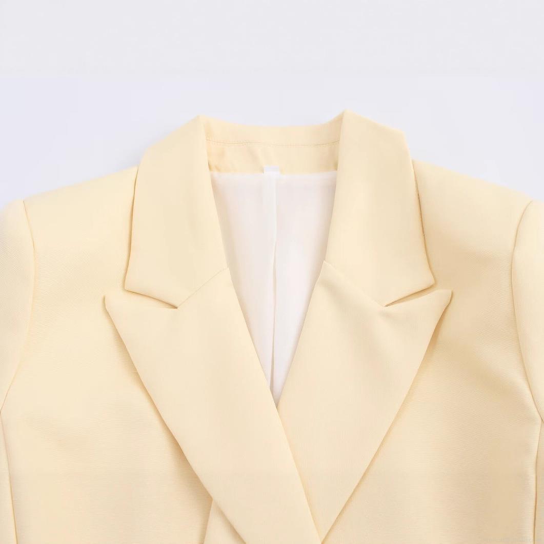 • Women's Double Breasted Blazer Jacket Lapel Long Sleeve Solid Color Polyester Suit Coat For Autumn Office Lady Street Style