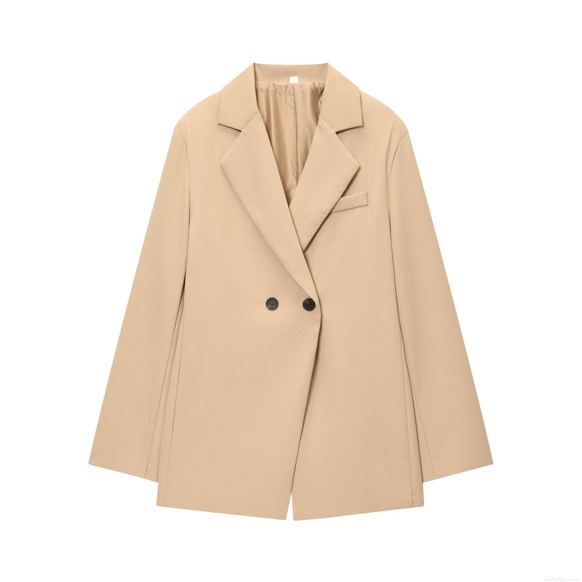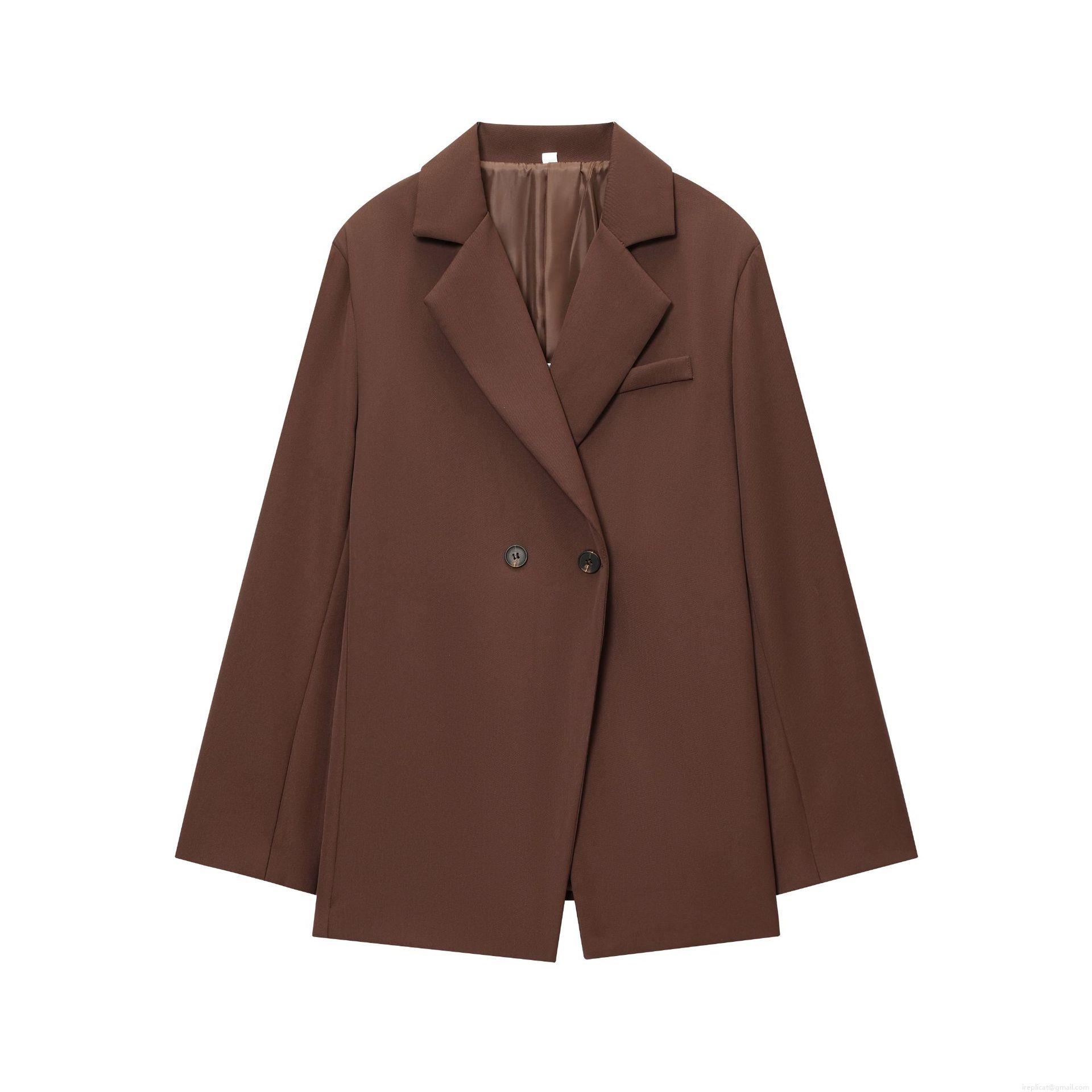 • Women's Double Breasted Blazer Jacket Solid Color Oversized Suit Jacket Long Sleeve Notched Lapel Casual Outerwear for Women Khaki Green Coffee