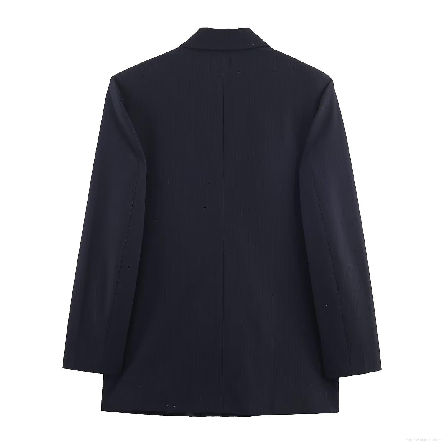 • Women's Double Breasted Pinstripe Blazer Jacket Long Sleeve Notch Lapel Suit Coat for Office Streetwear Professional Work Wear Professional Lady Outerwear