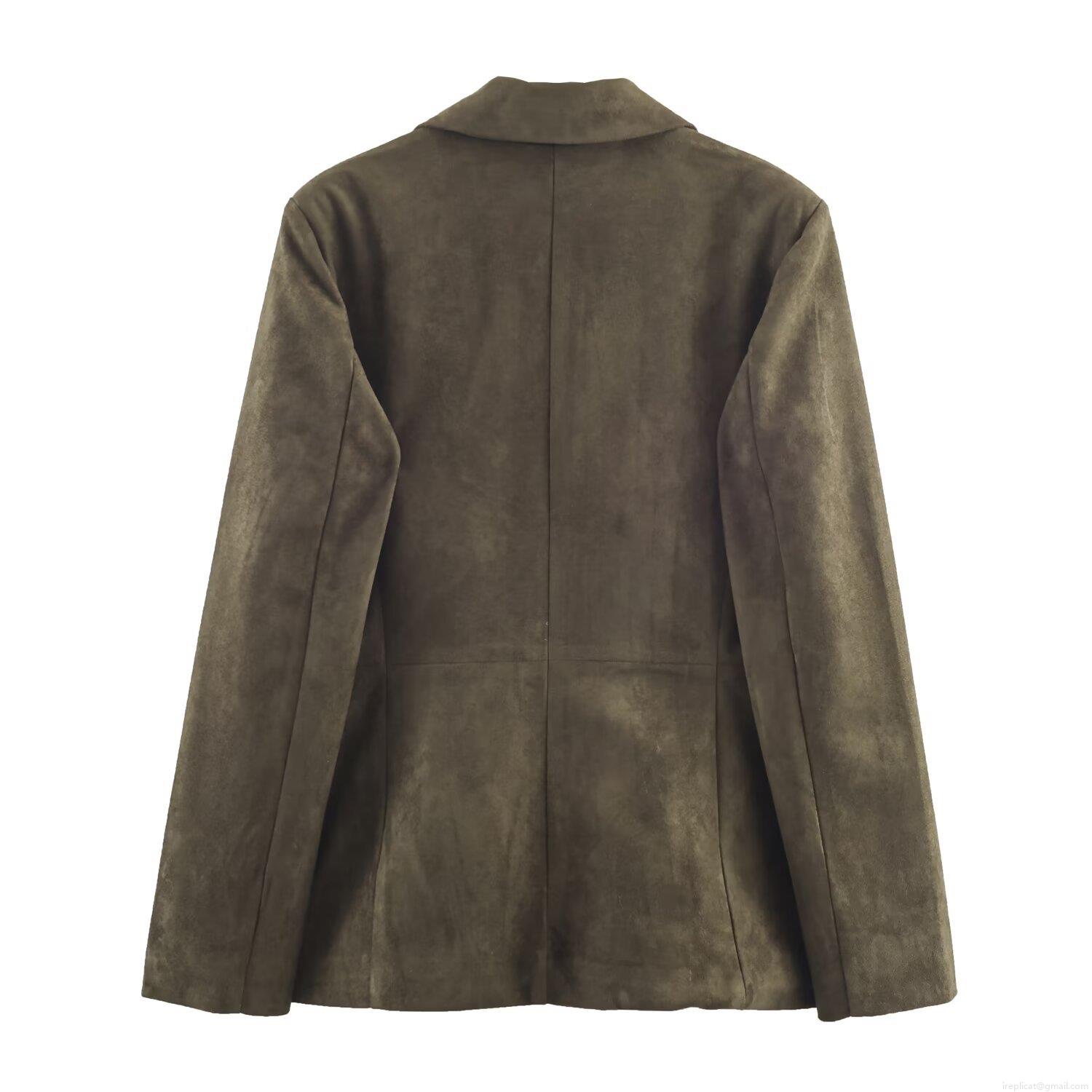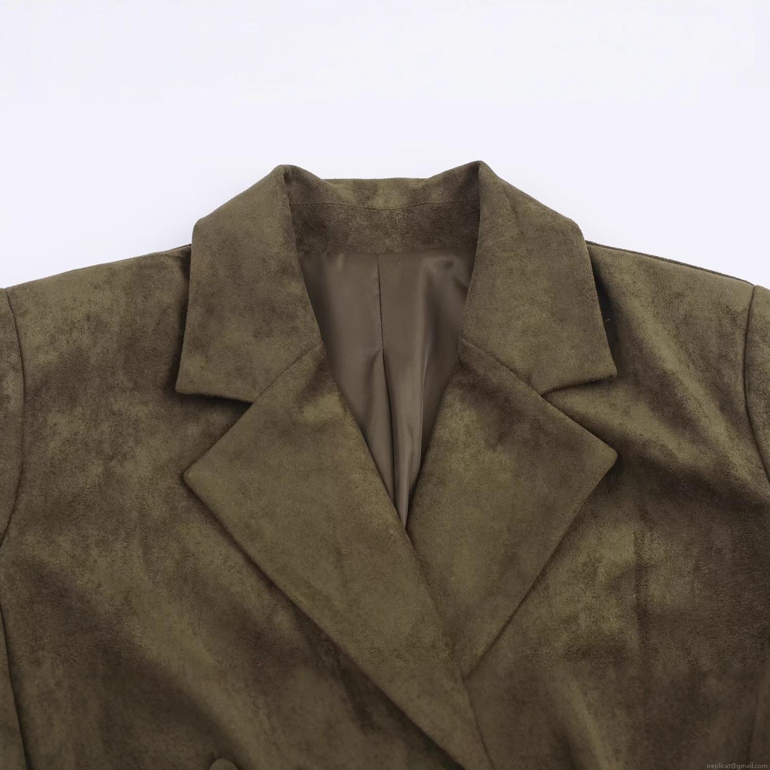 • Women's Double Breasted Suede Suit Jacket Faux Suede Long Sleeve Blazer Olive Green Commuter Elegant Outerwear for Women Spring Autumn