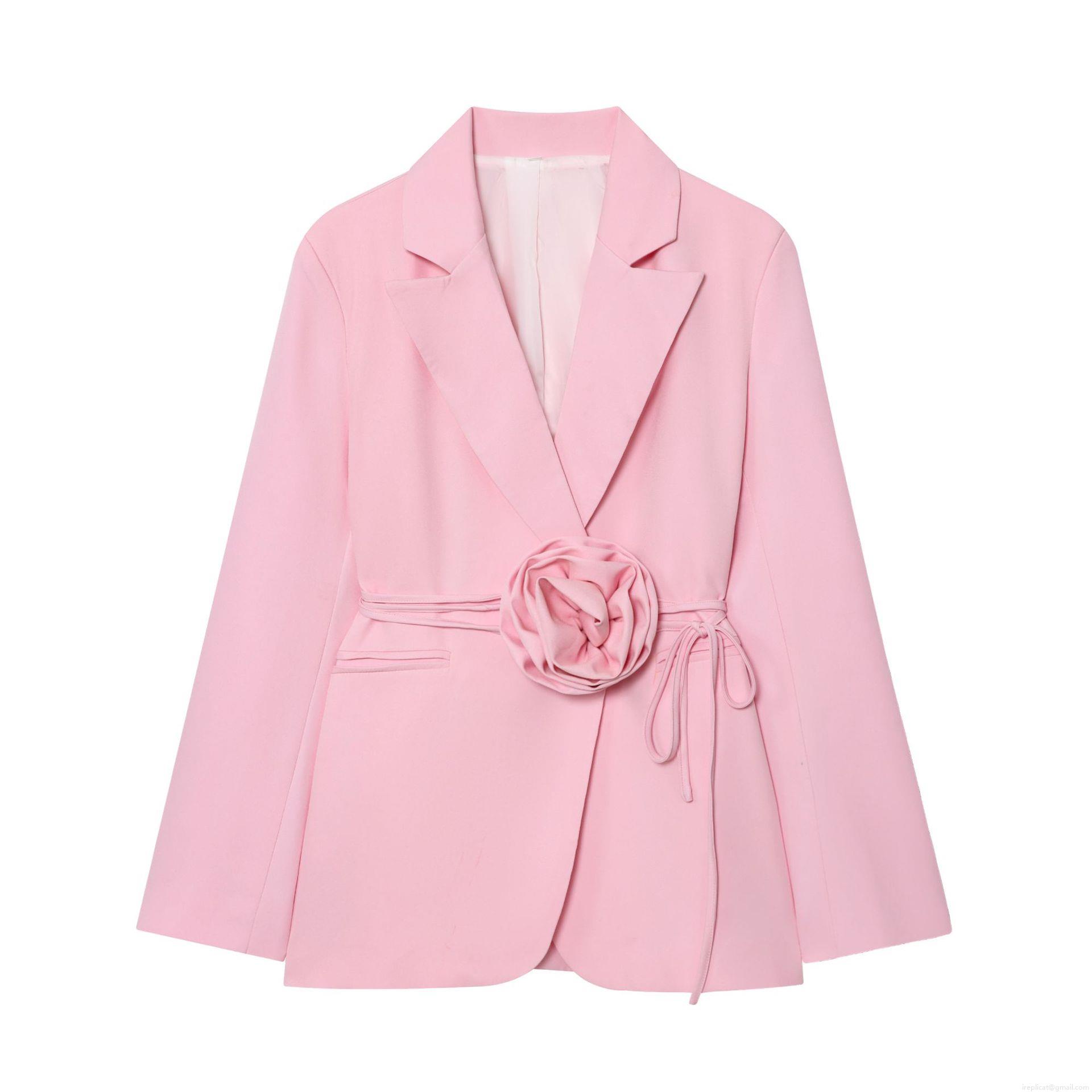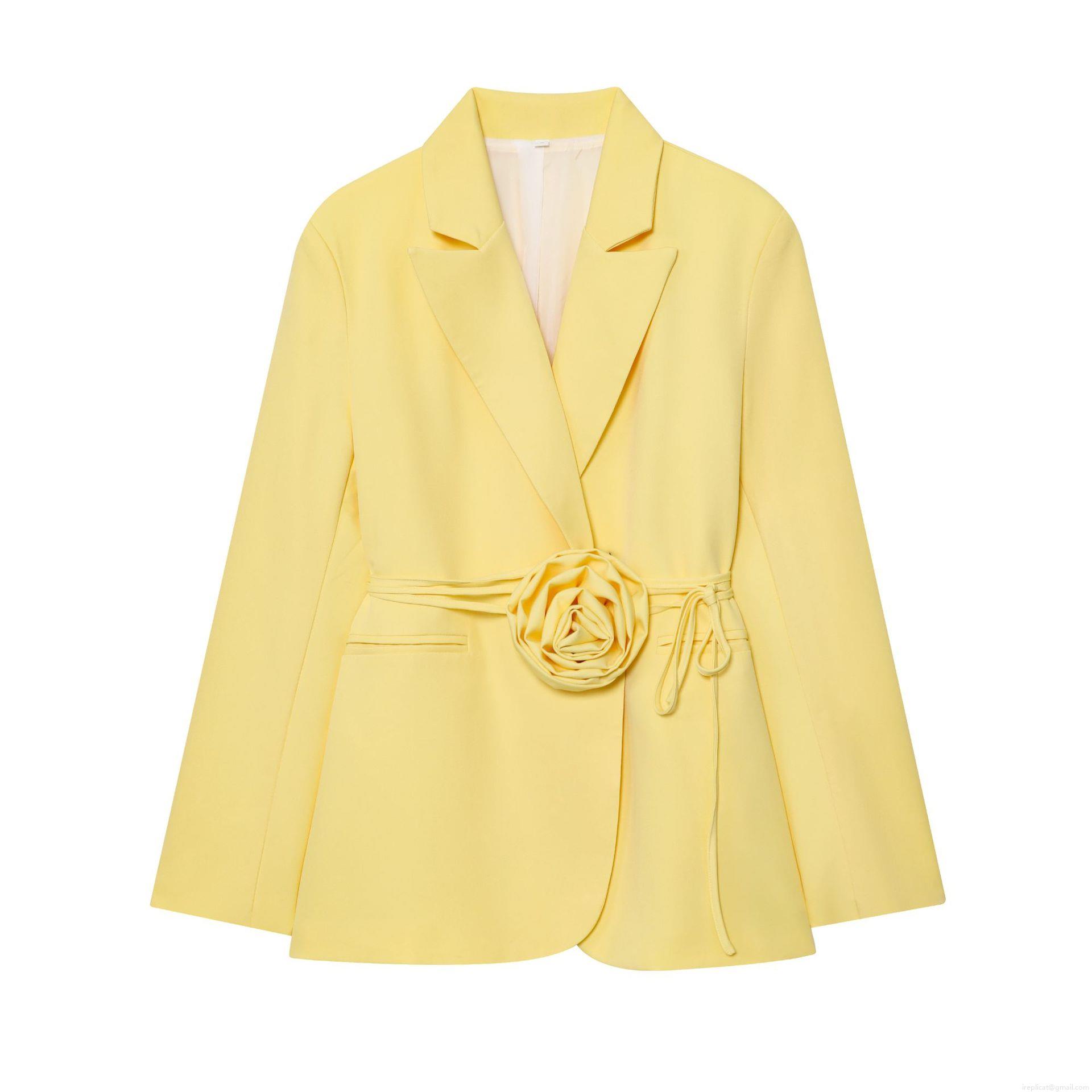 • Women's Elegant 3D Rose Flower Decoration Blazer 100% Polyester Lace Up Waist Long Sleeve Suit Jacket For Casual Office Wear Party Ladies Fashion Outerwear