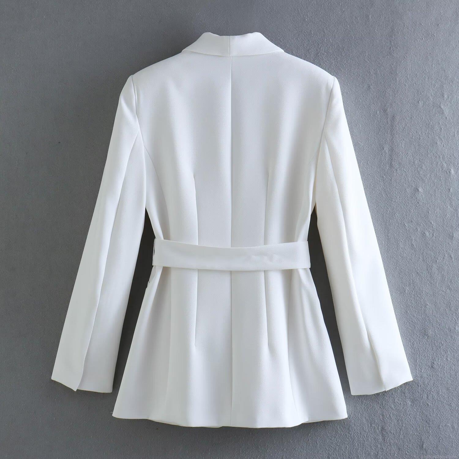 • Women's Elegant Belted Blazer Jacket Fashion Long Sleeve Notched Lapel Suit Coat For Office Lady Commuter Casual Outwear Plain Polka Dot Colors