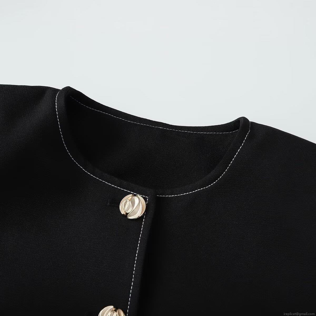 • Women's Elegant Black Blazer Jacket Contrast Topstitching Single Breasted Round Neck Long Sleeve Suit Outwear For Daily Office Streetwear
