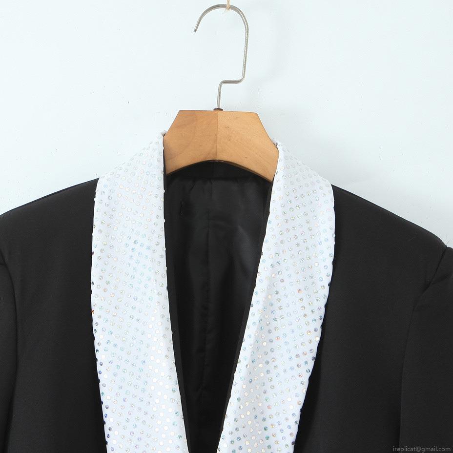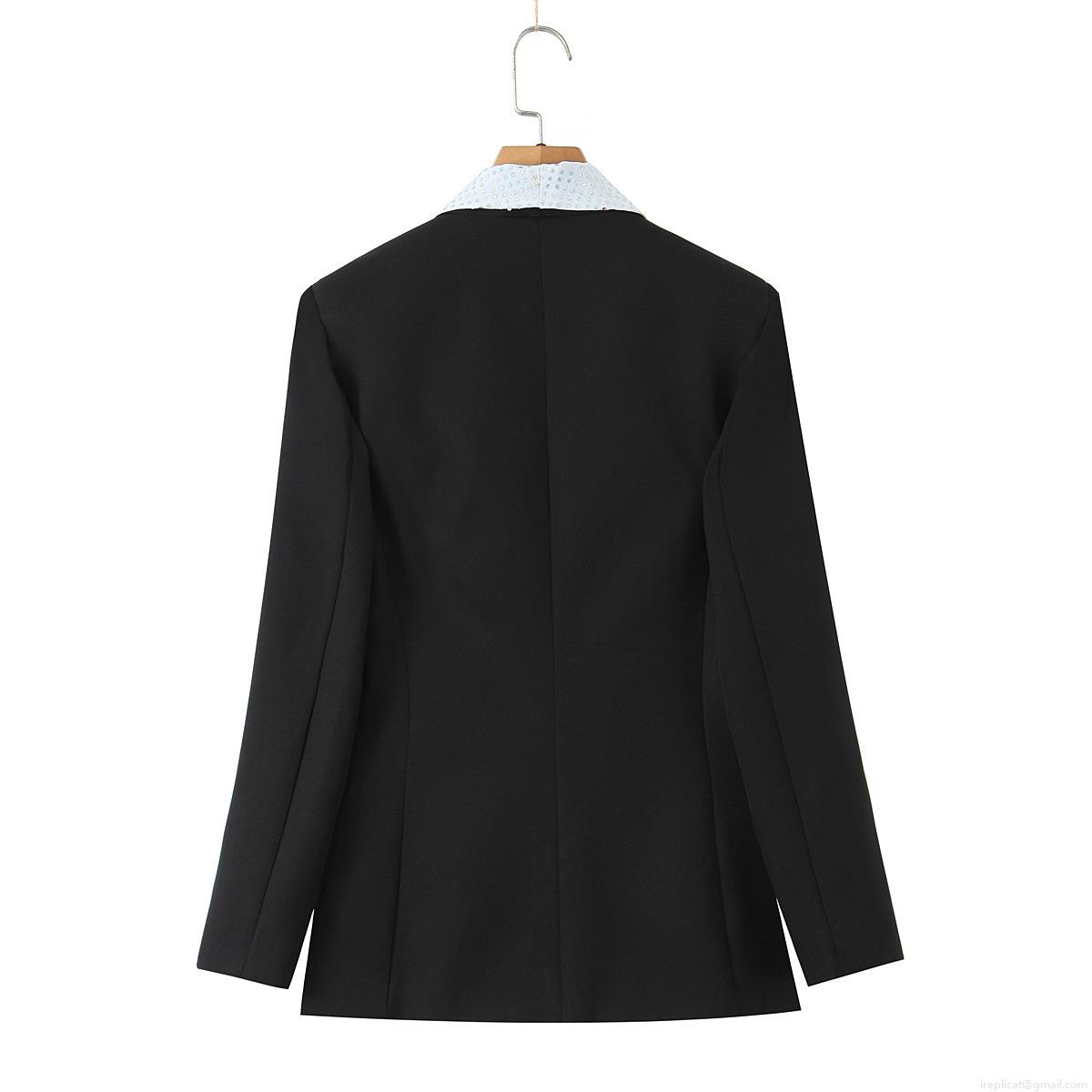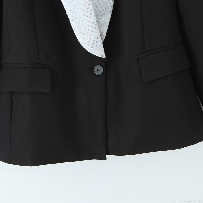 Solid Color, Splice, Sequin, Sequin Splicing, Single-breasted Single Button, Princess Sleeves, Color-blocked Lapel