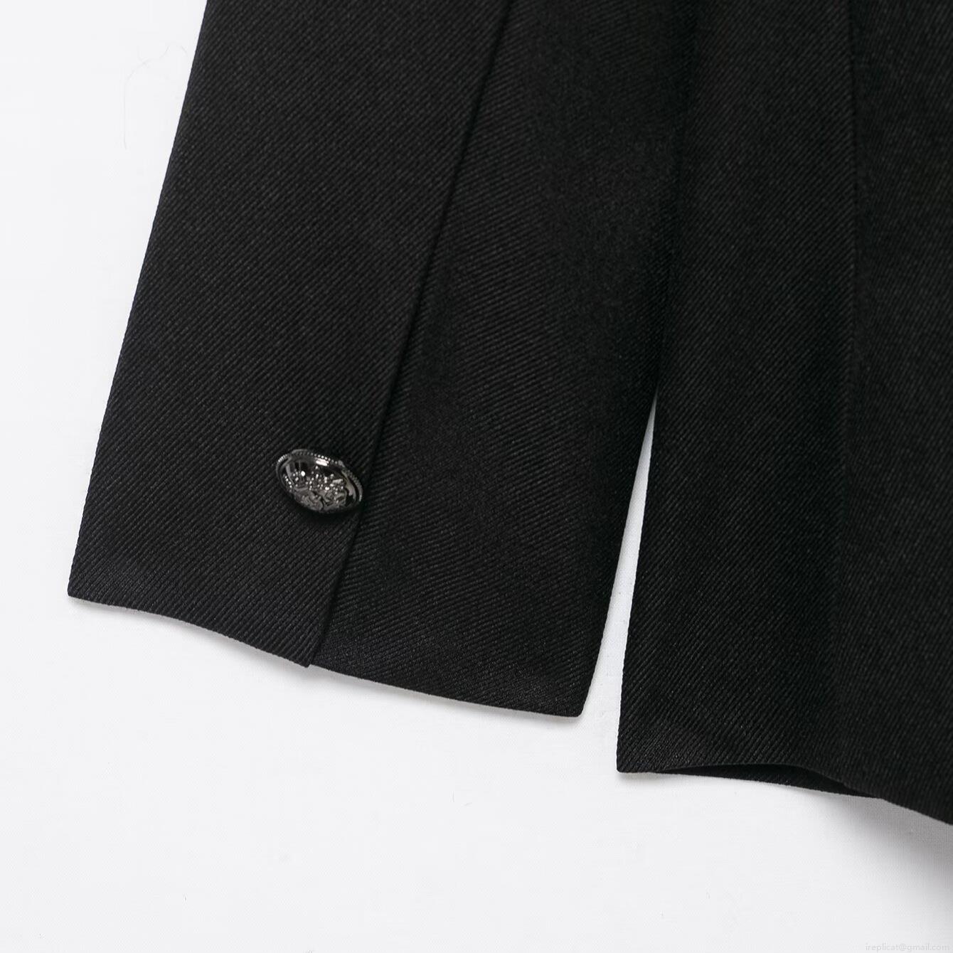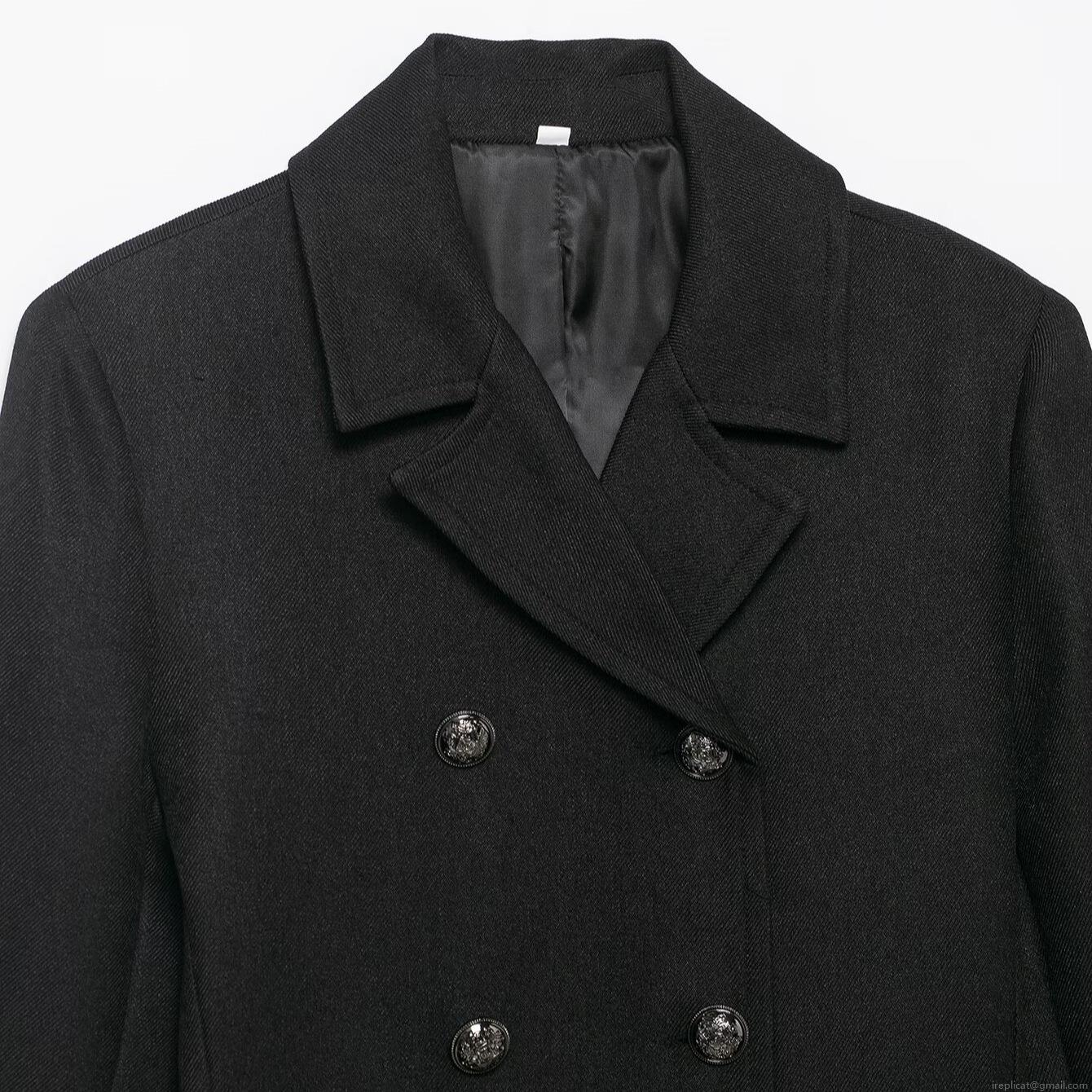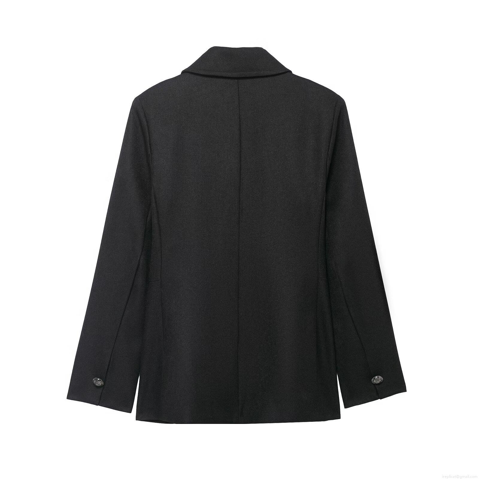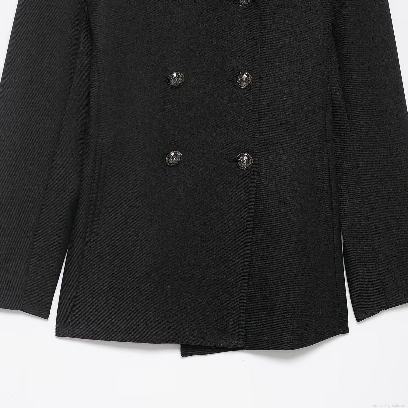 • Women's Elegant Black Double Breasted Blazer Coat With Embossed Metal Buttons Mid-Length Polyester Twill Outerwear For Office Commute