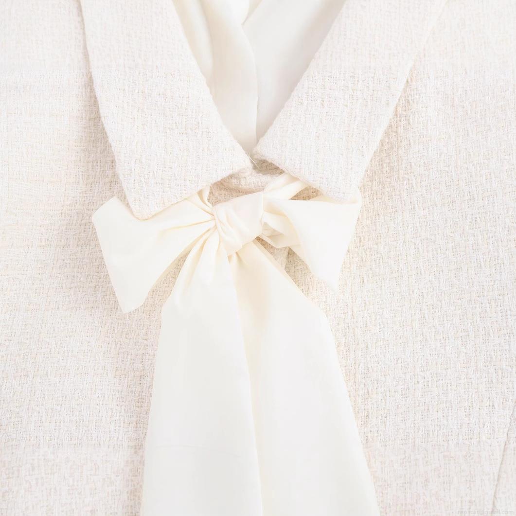 • Women's Elegant Bow Decor Tweed Blazer Lapel Long Sleeve Short Jacket Casual Chic Streetwear Polyester Outerwear Coat For Spring Summer Autumn