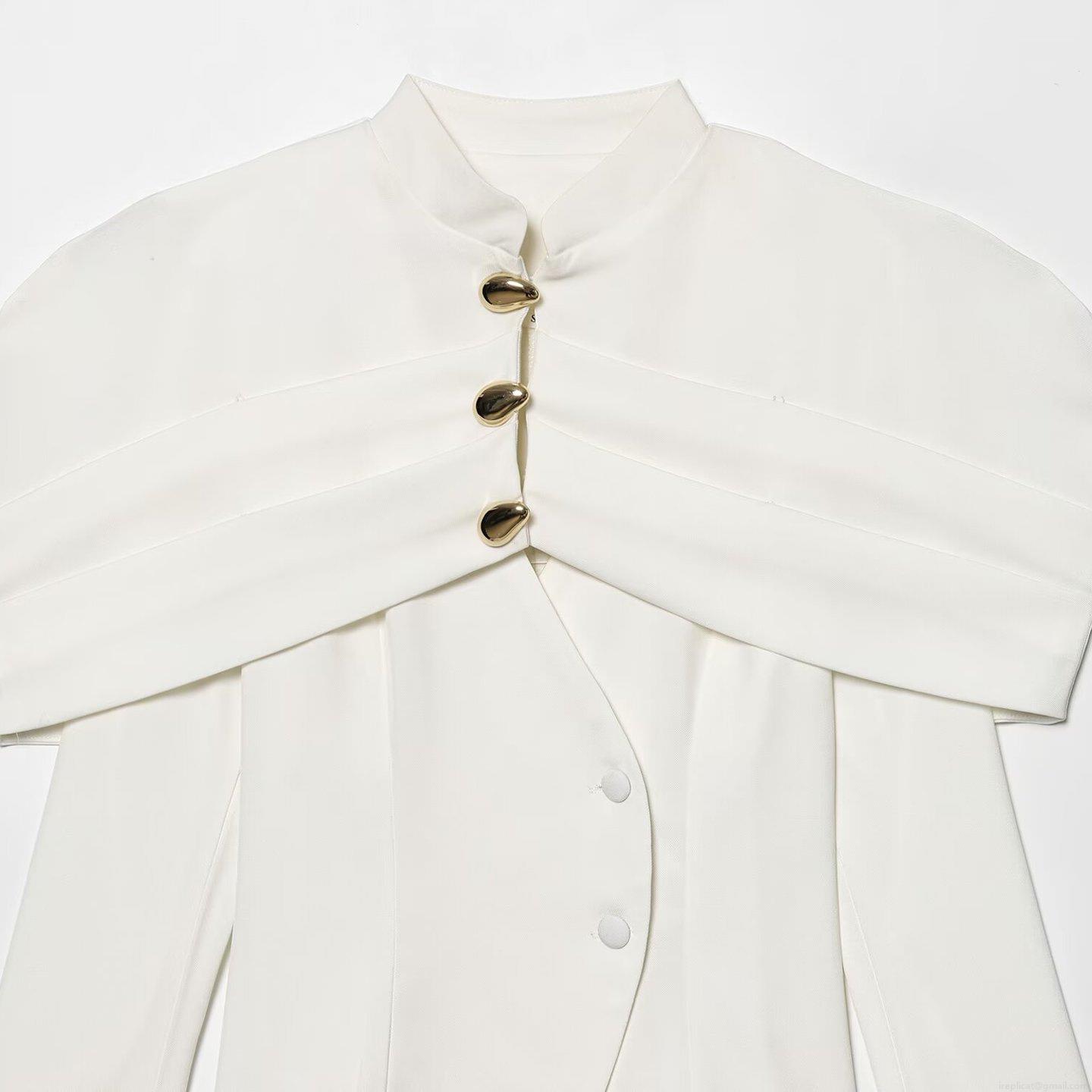 • Women's Elegant Cape Blazer Jacket Slim Fit Off-Shoulder Suit Outerwear With Gold Buttons For Office Party Work Winter Autumn Fashion Elegant Style