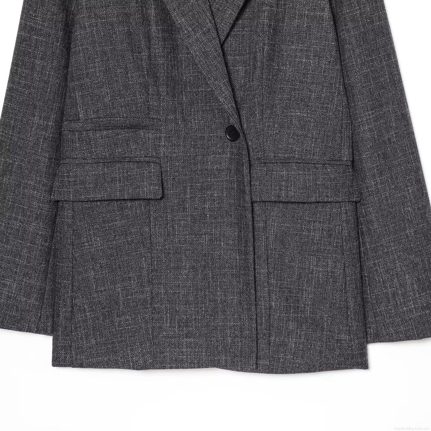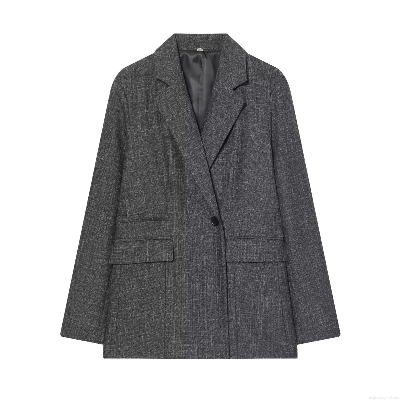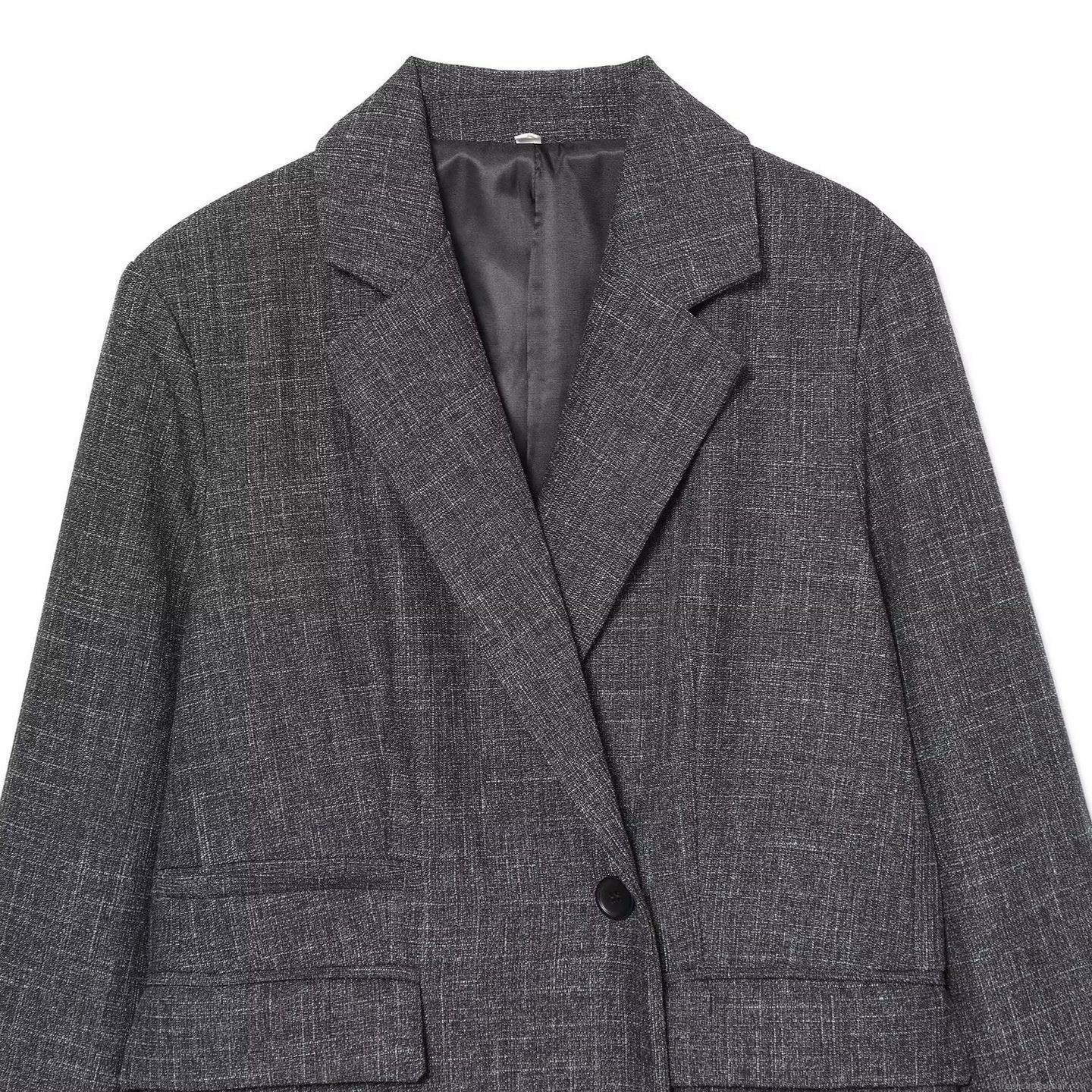 • Women's Elegant Deep Grey TR Fabric Blazer Jacket Single Button Long Sleeve Loose Fit Lapel Suit Outerwear For Office Daily Career Wear