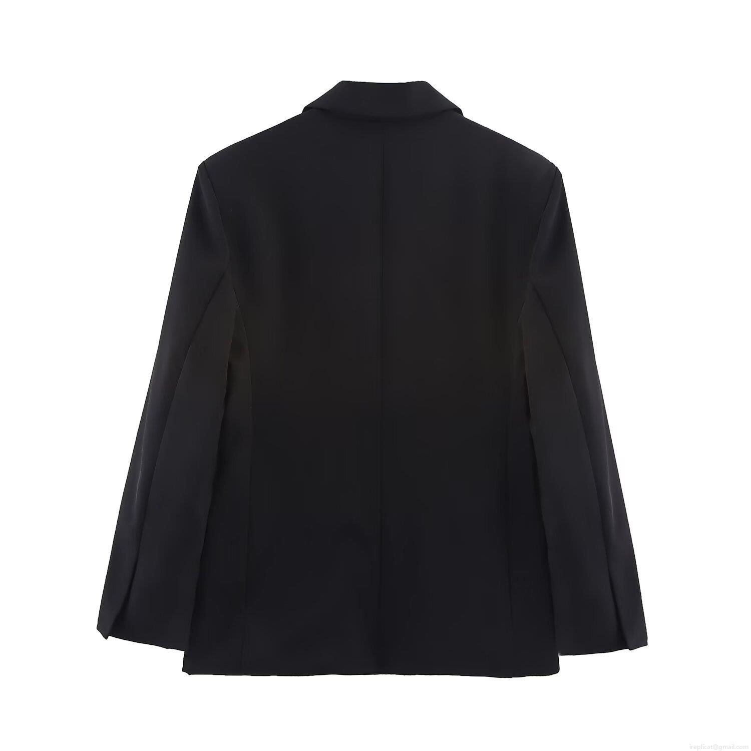 Solid Color, Double-breasted, Notched Collar, Satin Patchwork