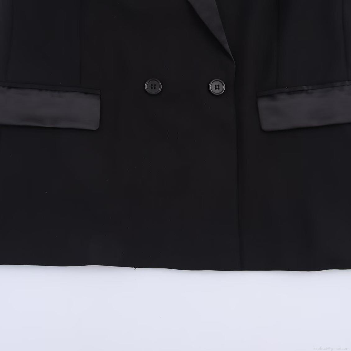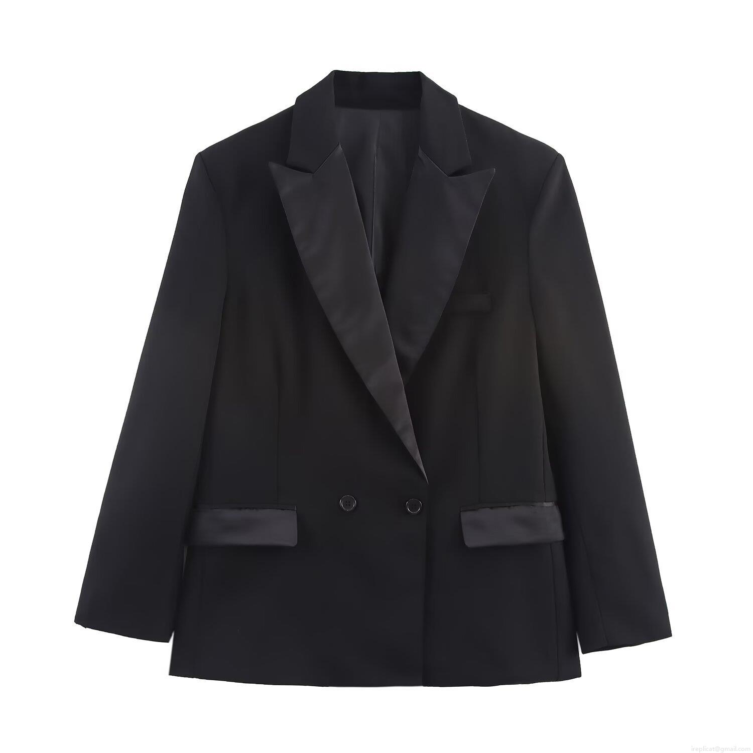 • Women's Elegant Double Breasted Blazer Satin Patchwork Peak Lapel Suit Jacket Long Sleeve Solid Color Slim Fit Outerwear for Office Work Fashion
