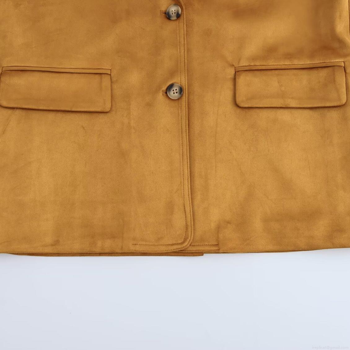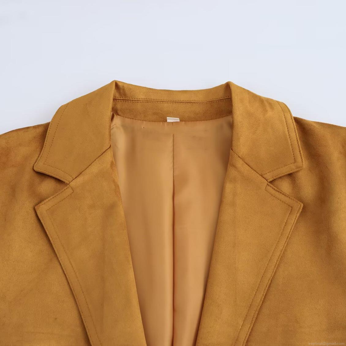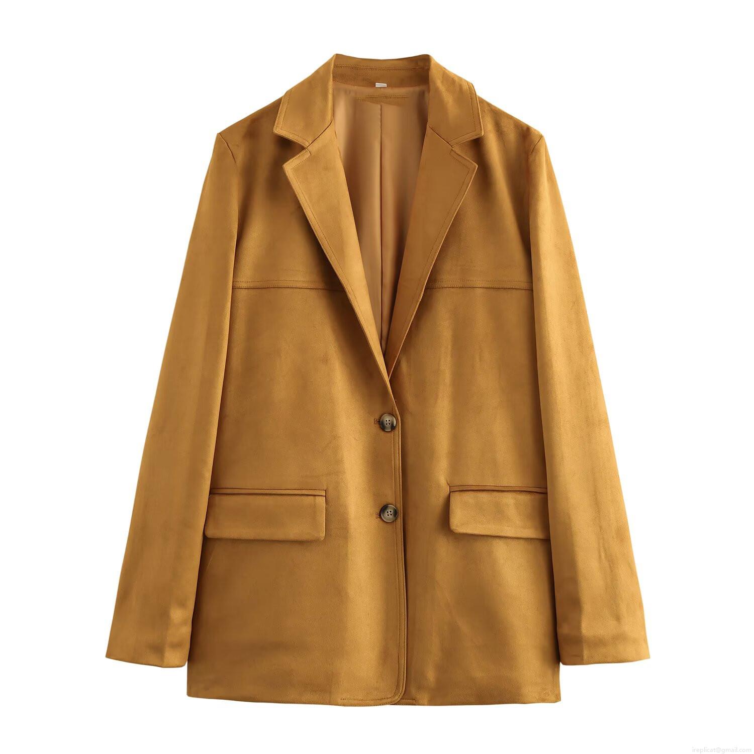 • Women's Elegant Faux Suede Blazer Jacket Loose Fit Casual Long Sleeve Solid Color Suit Coat With Pockets For Office Commute Autumn Winter Women Outwear