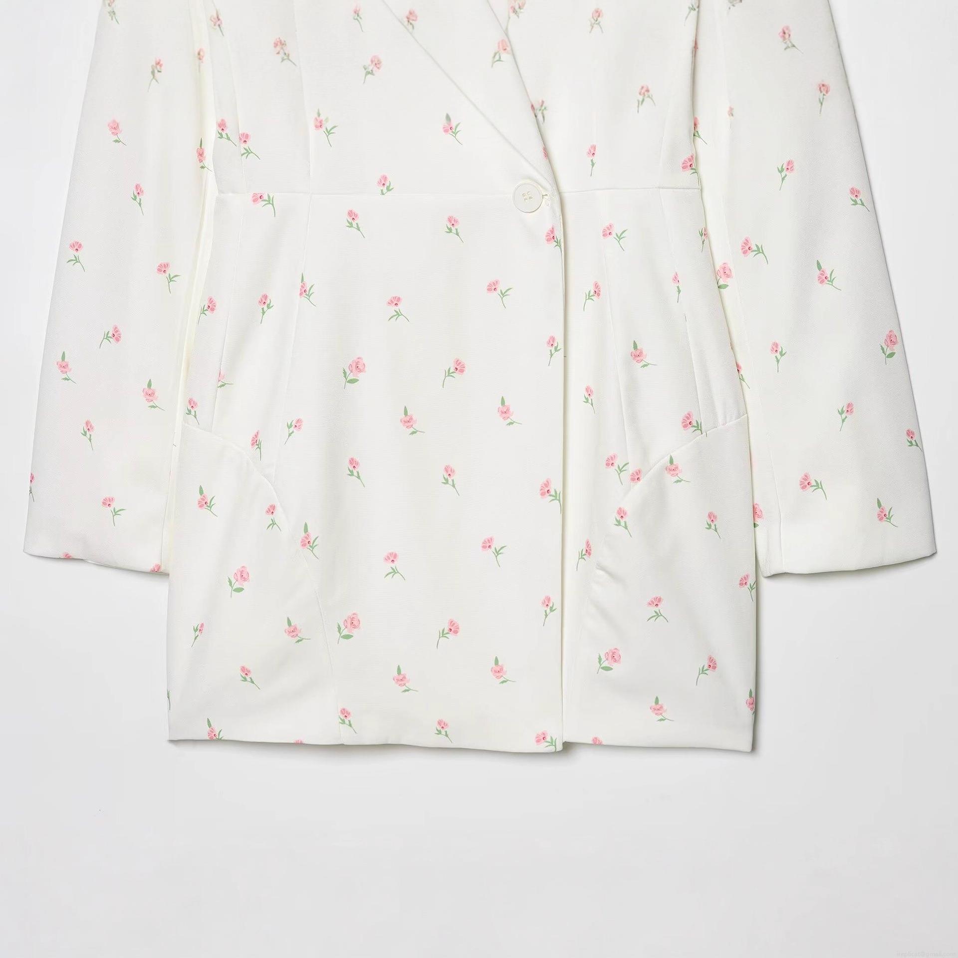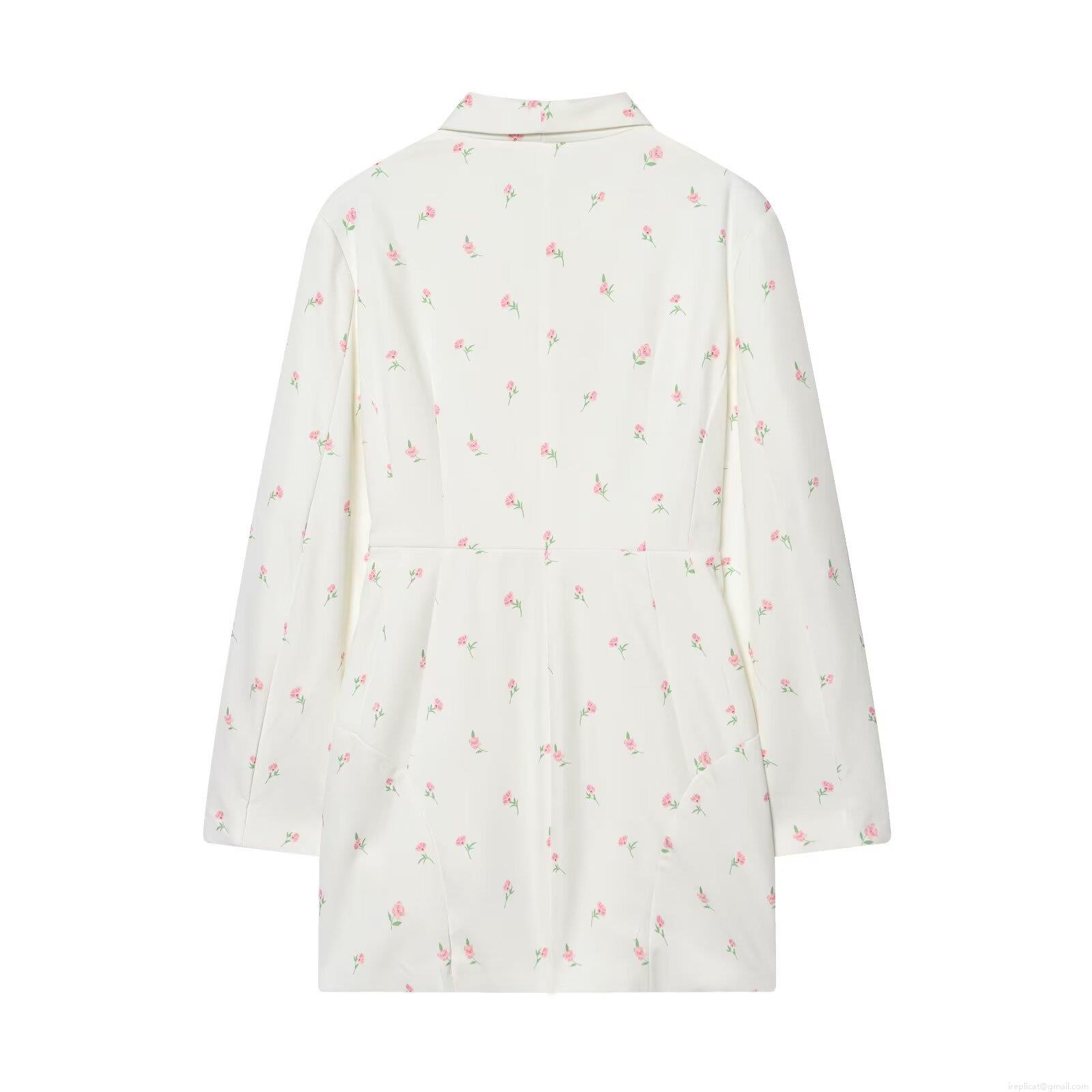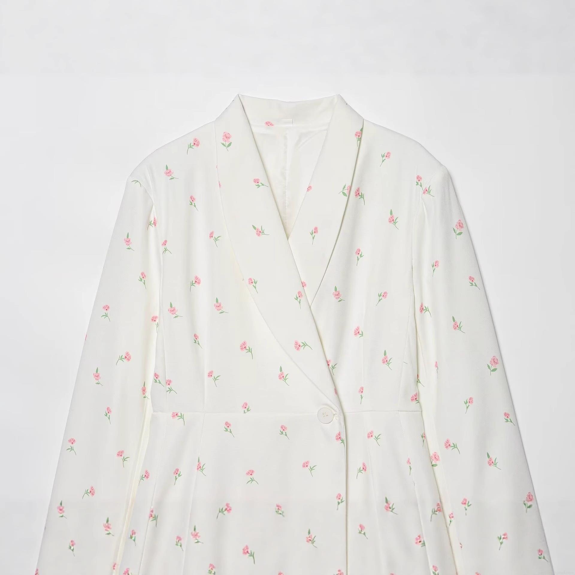 • Women's Elegant Floral Print Blazer Dress Long Sleeve Single Breasted Slim Fit Polyester Suit Jacket For Work Party Daily Wear Chic Outerwear